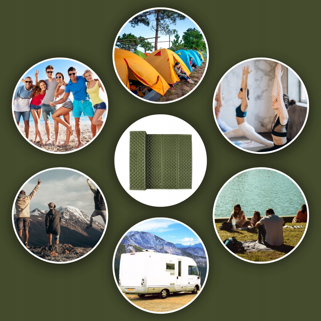 ✅Вологоізоляція: килимок виготовлений зі спеціального пінополіетилену, який ідеально ізолює вологу. Це робить його чудовою поверхнею для сну, захищаючи від вологи та холоду як на трав’янистих ділянках, так і на інших поверхнях.