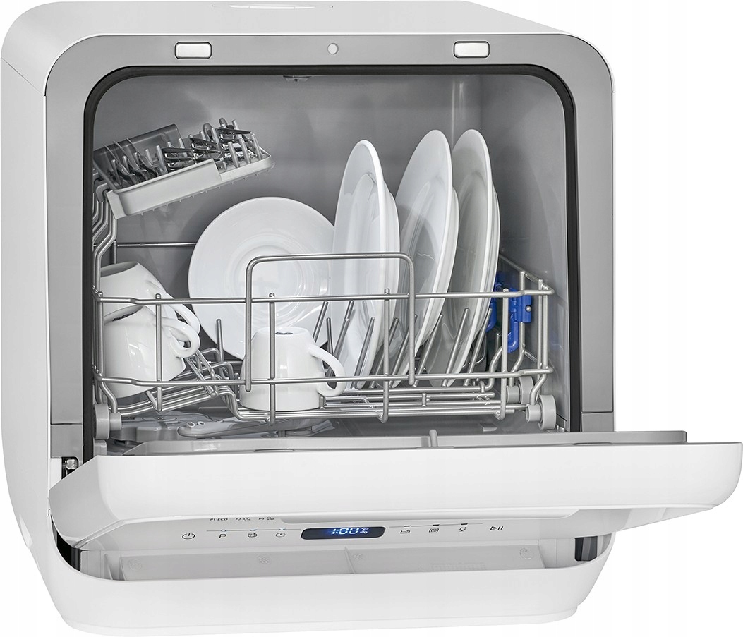 Компактна посудомийна машина Bomann TSG — чудове рішення для невеликих кухонь, кемперів і караванів. Цей компактний пристрій також працює без постійного підключення до води. Всередині можна розмістити два комплекти посуду, які миються потужністю 730-860 Вт. Витрата води становить лише 5 літрів на один цикл миття, що робить пристрій надзвичайно економічним порівняно з ручним пранням. Посудомийна машина пропонує п'ять програм для різного ступеня забруднення посуду: ECO, 60 хвилин, 30 хвилин, самоочищення та ополіскування скла.