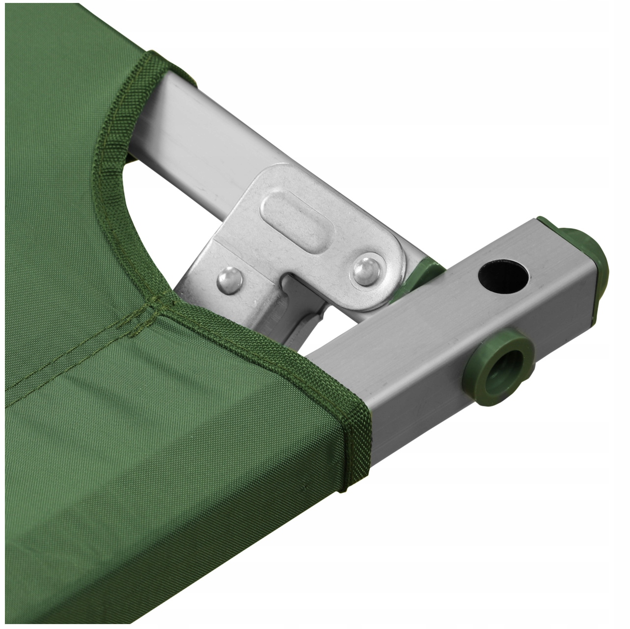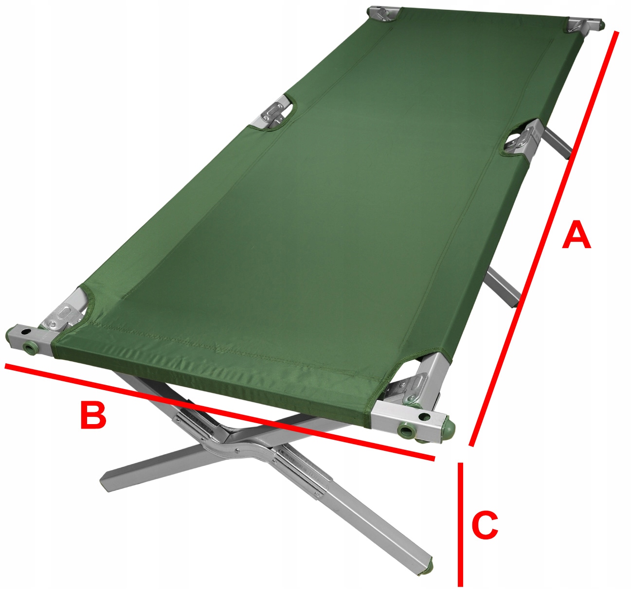 Складне польове ліжко, модельоване на моделях армії США, виготовлених із світлого алюмінію, що забезпечує його довговічність та стабільність. Навантажувальна ємність: