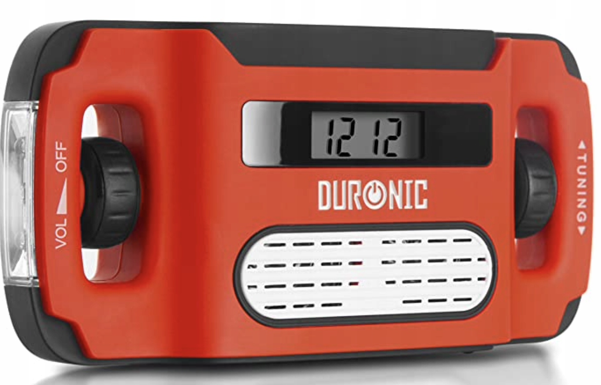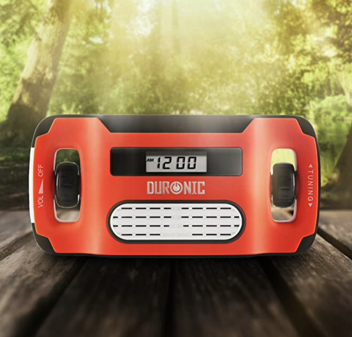 - Duronic APEX — це дуже маленьке туристичне радіо, яке можна легко помістити в сумку чи рюкзак. Заряджається пристрій від динамо-батареї, сонячної батареї або USB-зарядки, тому для нього не потрібно купувати батарейки. Ви можете взяти їх куди завгодно. Він стане відмінним компаньйоном для походів, кемпінгу або сімейних шашликів.