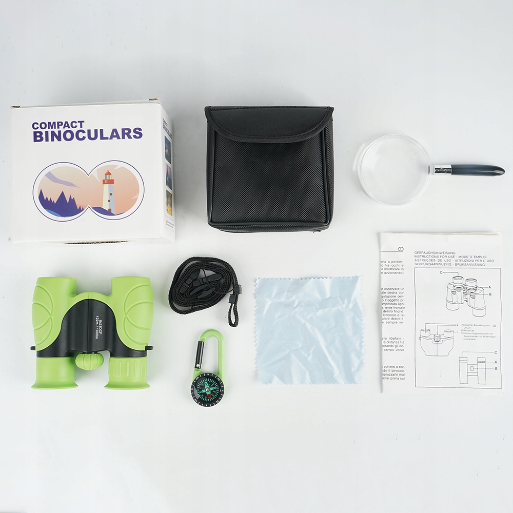 - 🔍 Бінокль Набір - ідеально підходить для молодих дослідників: бінокль високої якості з лупою, компасом, корпусом, ременем на шиї та очищенням.