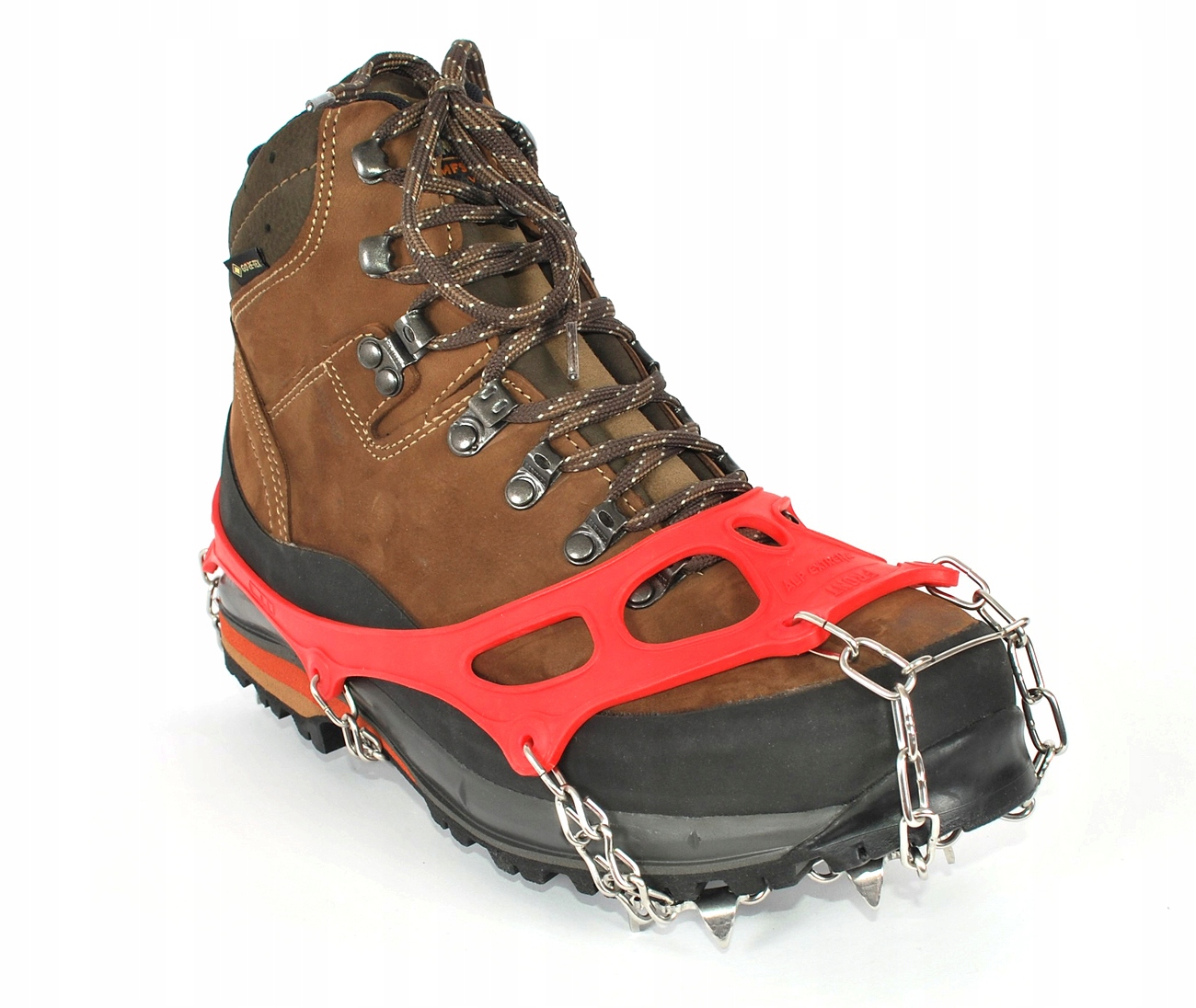 Ручки мають 13 сталевих зубів із загартованої нержавіючої сталі, які кріпляться ланцюжками до гумового затискача. Вони ідеально підходять для крижаних поверхонь, як у міських зимових умовах, так і на трейлі.