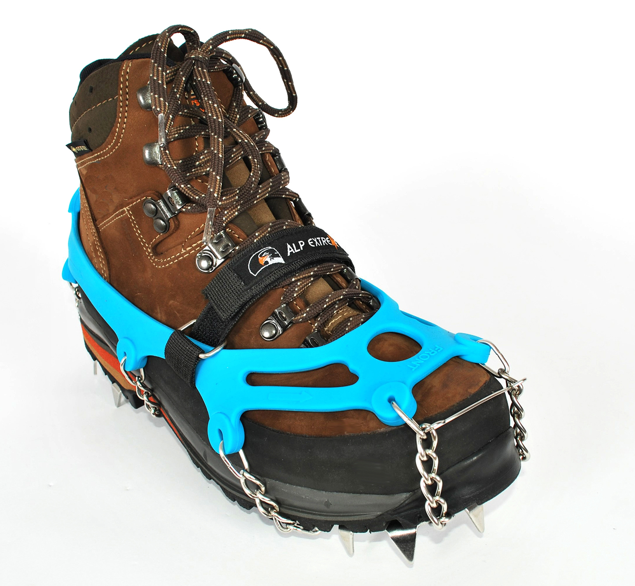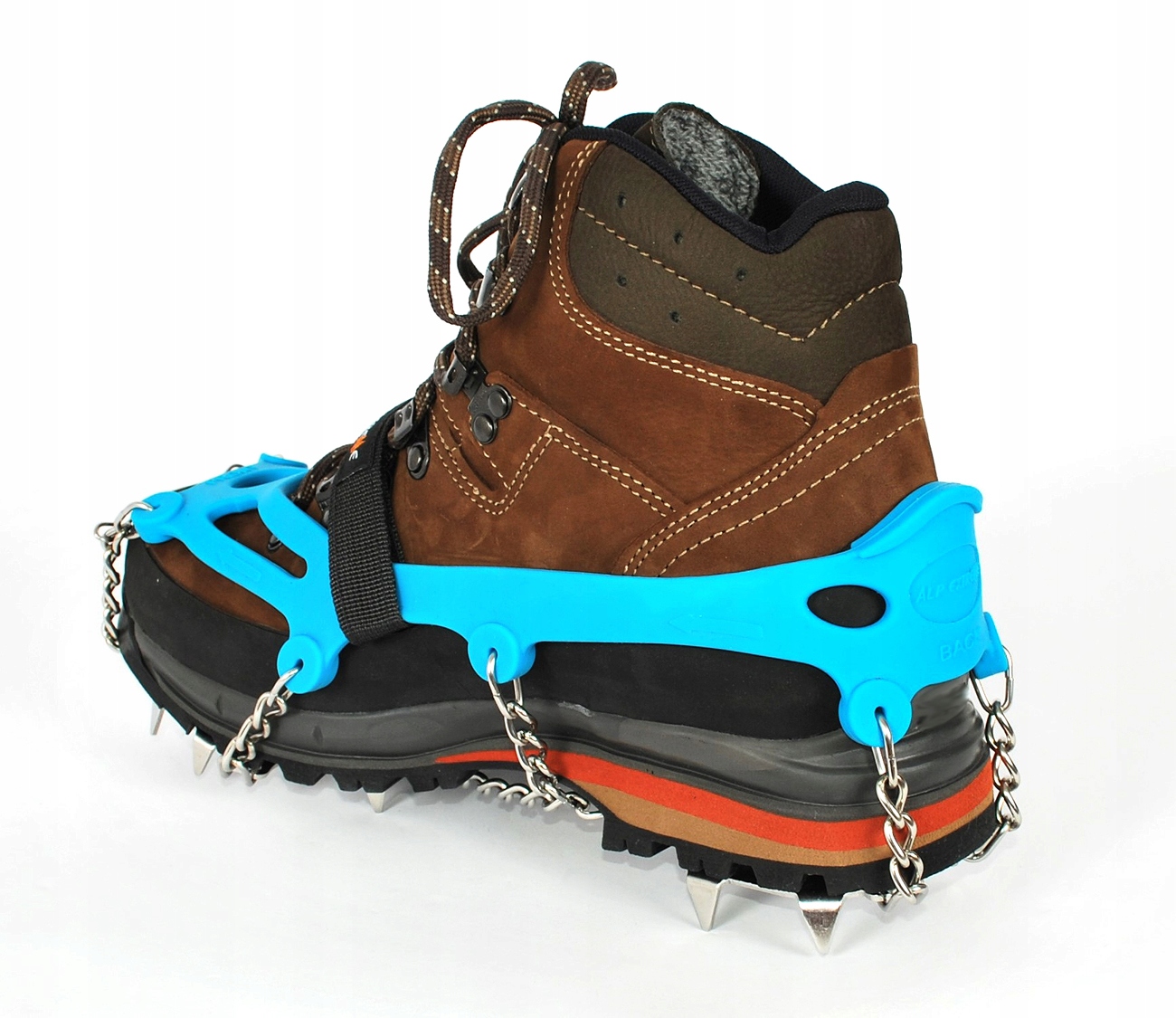Високоякісні професійні туристичні рукоятки Alp Extreme Mount Pro Blue із поворотним ланцюжком — це продукт для досвідчених користувачів. Використана нержавіюча сталь найвищої якості та чудовий силіконовий еластомер з надзвичайною механічною міцністю. Вони захищають від ковзання на утрамбованому снігу та льоду. Призначений там, де необхідна хороша адгезія до снігу та льоду. Світла і простора. Вони кріпляться до взуття завдяки еластичній стрічкі з силіконового еластомеру і додатковому ремінцю, що застібається на липучку. Упакований в сумку з ручкою, закривається на блискавку.