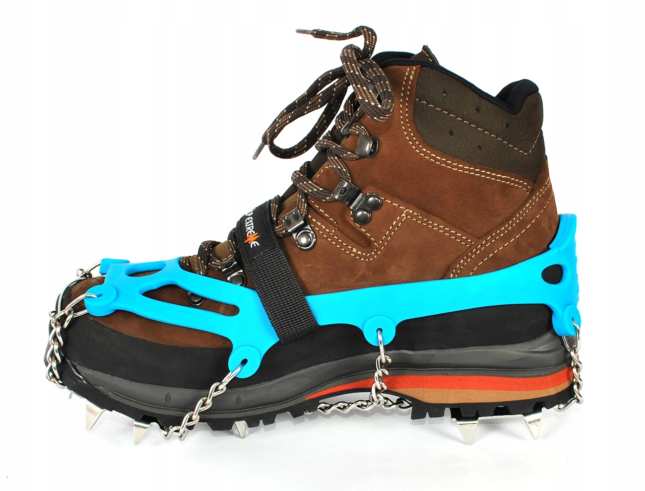 Ручки мають 13 сталевих зубів із загартованої нержавіючої сталі, закріплених на силіконовому затискачі з ланцюжками. Вони ідеально підходять для крижаних поверхонь, як у міських зимових умовах, так і на трейлі.