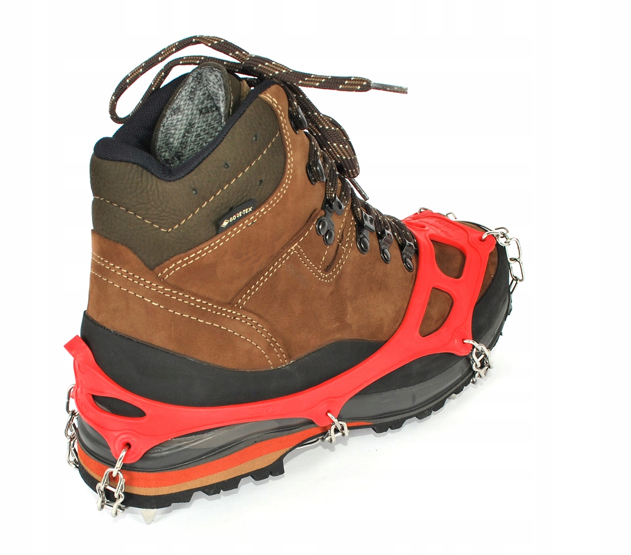 Ручки мають 13 сталевих, загартованих зубців із нержавіючої сталі, прикріплених до гумового затискача з ланцюжками. Вони ідеально підходять для крижаних поверхонь, як у міських зимових умовах, так і на трейлі.