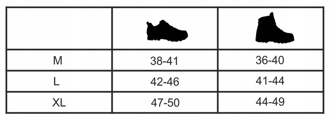 * Діапазон розмірів у таблиці є приблизним, а посадка залежить від типу та форми конкретного взуття.