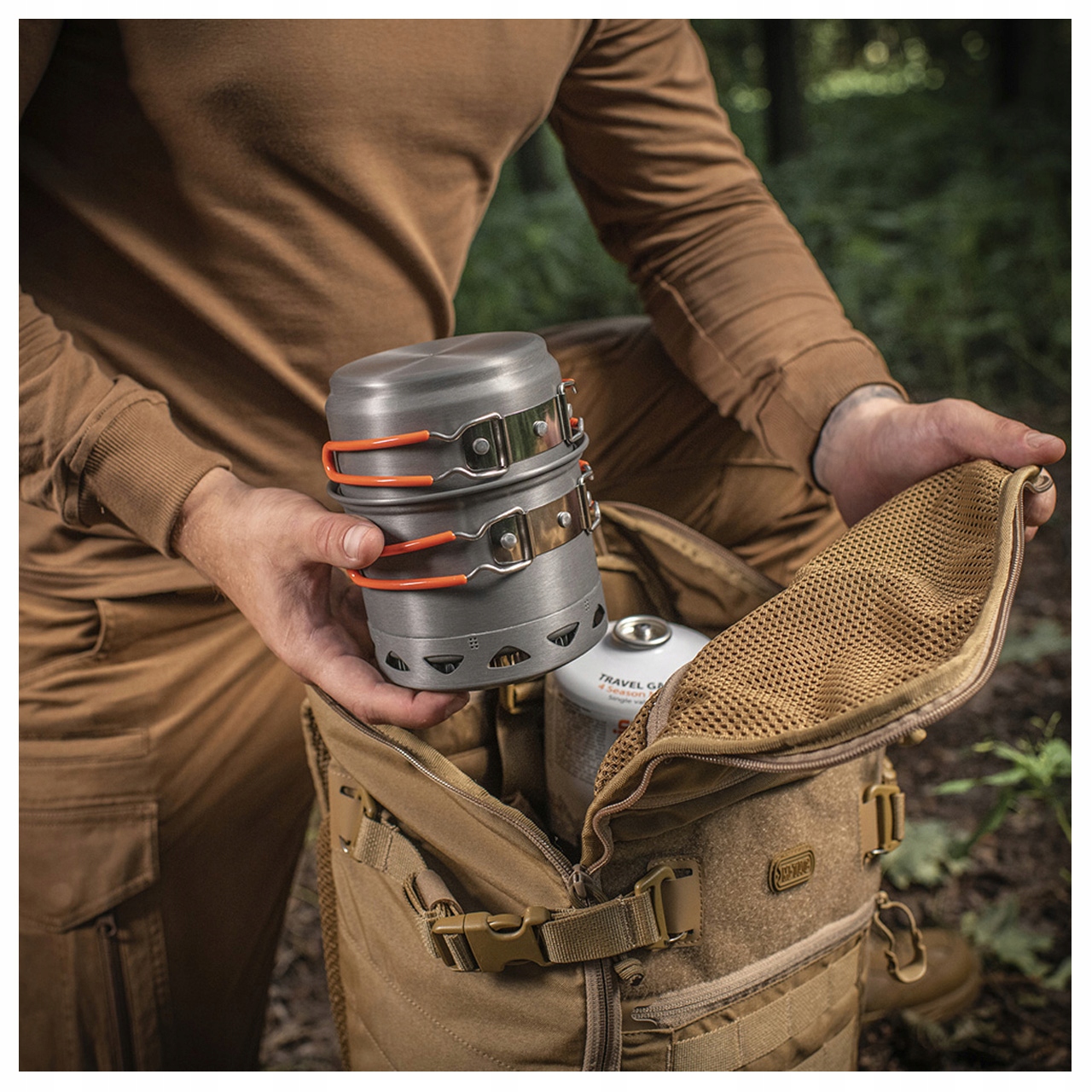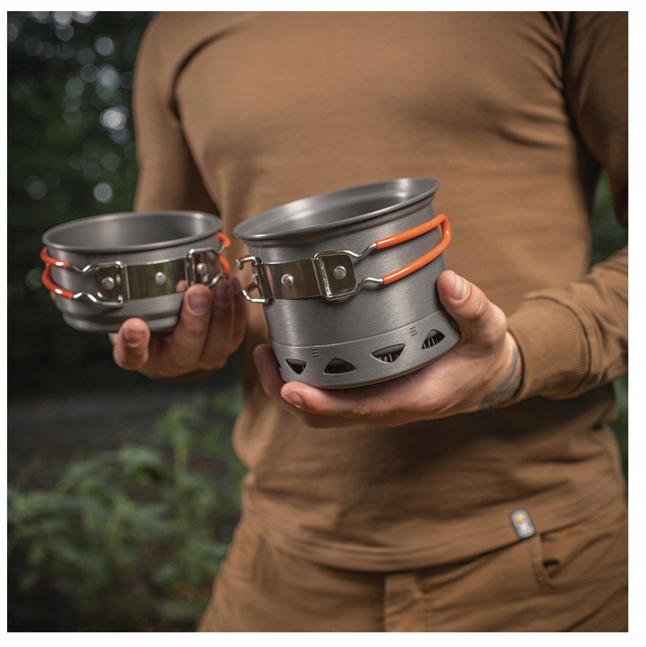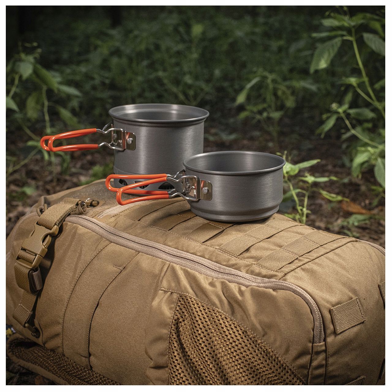 індивідуальний набір страв M-tac. Цей матеріал Світло , завдяки якому страви не будуть обтяжувати туристичне обладнання, а тонкі стіни забезпечать швидке нагрівання. Завдяки компактному розміру та складній структурі , всі елементи набору не займають багато місця в рюкзаку.