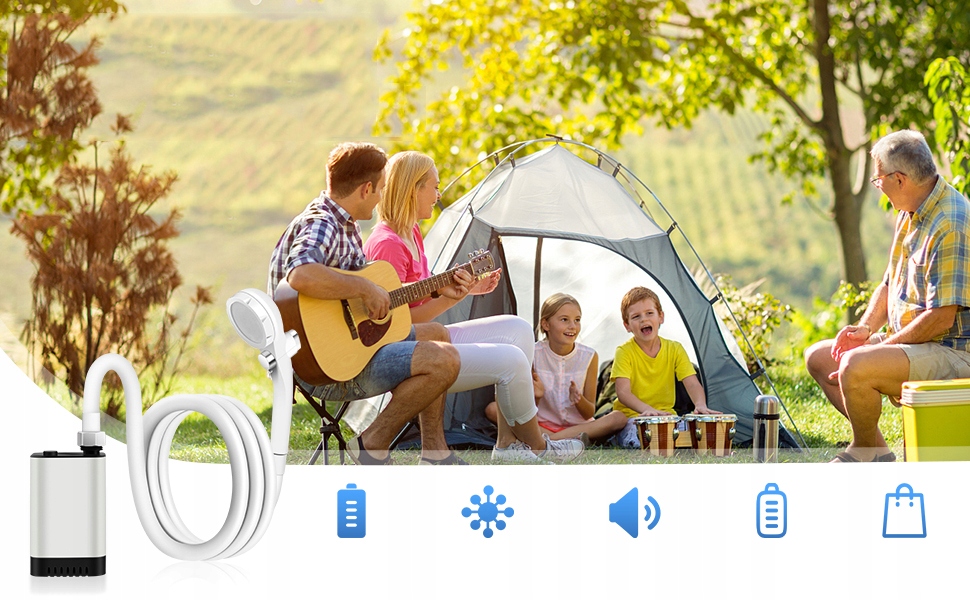 - душ кемпінгу з насосом оснащений вдосконаленим безщірним двигуном, , який є більш стійким, міцнішим і має довше життя.