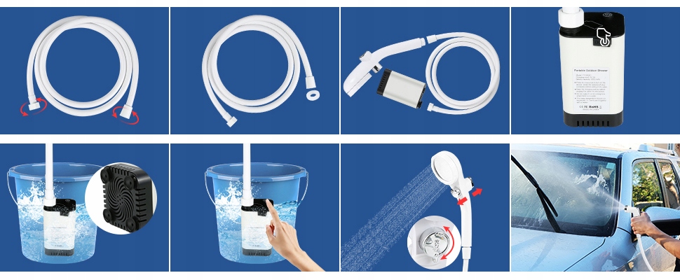 - підходить для: кемпінг, дитячий душ, очищення домашніх тварин, полив сад, мандрівки для пішоходів, надзвичайна живлення в будинку