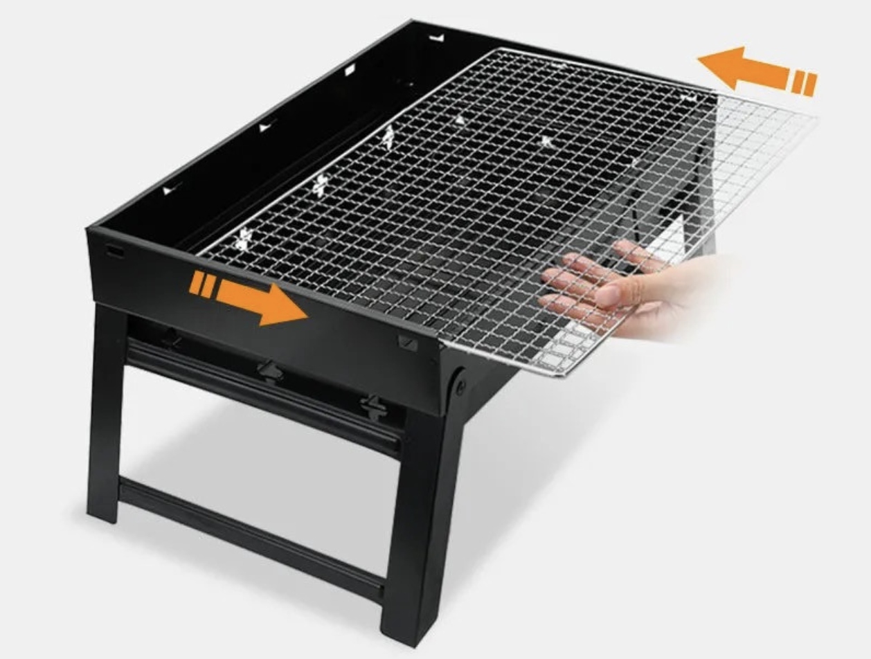 Оснащений висувною хромованою решіткою для легкого завантаження вугілля та очищення після використання.