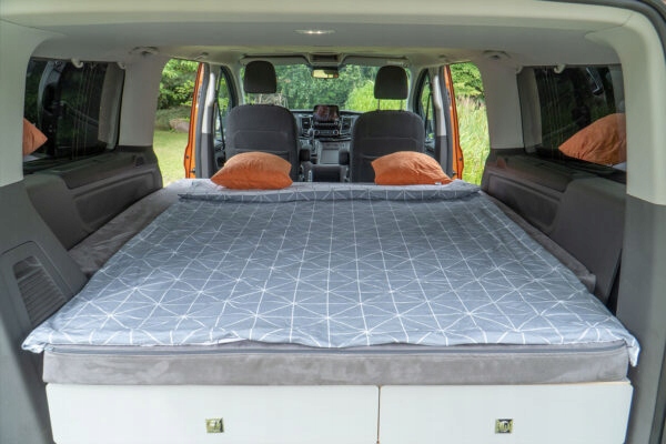 Верхня частина Allbox- розкладне ліжко зі зручним матрацом. Каркас виготовлений з легкої фанери, а конструкція каркаса ліжка дозволяє використовувати всю ширину салону автомобіля завдяки надставкам. Підняті панелі ліжка полегшують доступ до багажу. У комплект входять дві транспортувальні сумки для панелей і каркас ліжка.
