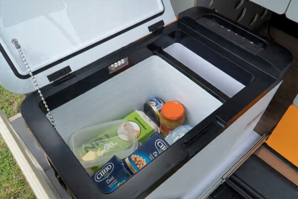 Додаткова опція - ефективний та економічний компресорний холодильник об'ємом 25 л. Він легко заморожує продукти до -18 градусів навіть у найспекотнішу погоду. Як і модуль Бістро, холодильник живиться від розетки прикурювача.