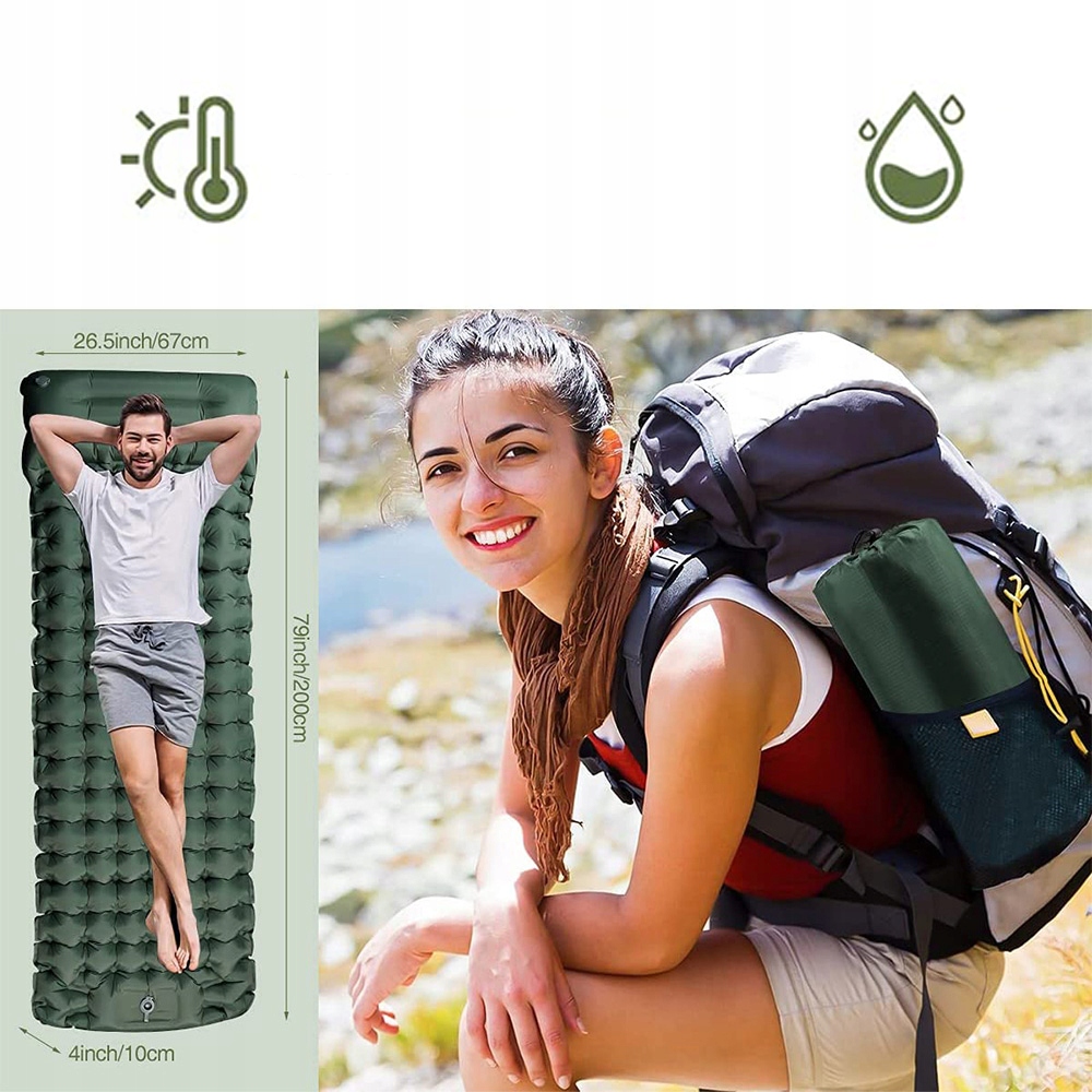 Ця спальна прокладка є водонепроникною, ізольованою і стійкою до розриву, а внутрішнє покриття ТПУ забезпечує герметичність. Він був розроблений для роботи у складних умовах. Навіть дощ, сніг, холодна зимова температура та нерівна місцевість з вибоїнами та дірками не вплинуть на його відмінні показники. Цей сплячий килимок ідеально вписується у ваш рюкзак під час наступного кемпінгу, блукання, їзди на велосипеді, риболовлі, полюванні чи каяки, забезпечуючи комфорт всю ніч.