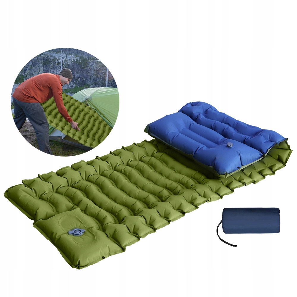 ✅thls широко широкий спальний килимок товщиною 10 см: 195 x 68 x 10 см, цей матрац з кемпінгом після надуття добре до нерівного ґрунту та місця з камінням. Інноваційна структура подушки безпеки та інтегрована структура подушки зменшують тиск на спину та шию, що дозволяє вільно регулювати баланс і комфорт. Це зручно і легко. Швидке спорожнення займає лише 1 секунду. Завдяки вдосконаленому, тісному витяжному клапану з мембраною, вам більше не потрібно турбуватися про витоки! прибирання. Ергономічна конструкція дозволяє сну доброзичливості навіть у складних зовнішніх умовах. Завдяки побудованому килимку вам більше не потрібно носити з собою додаткові килимки. Ви можете легко упакувати його в рюкзак, ідеально підходить для походів, кемпінгу, рюкзаків, подорожей, сходження, похідних та інших заходів на свіжому повітрі. Ви можете легко поєднати більше елементів, щоб створити двоспальне ліжко, завдяки якому ви отримаєте більше місця для відпочинку та зручнішого сну. Ідеально підходить для кемпінгу з родиною та друзями.
