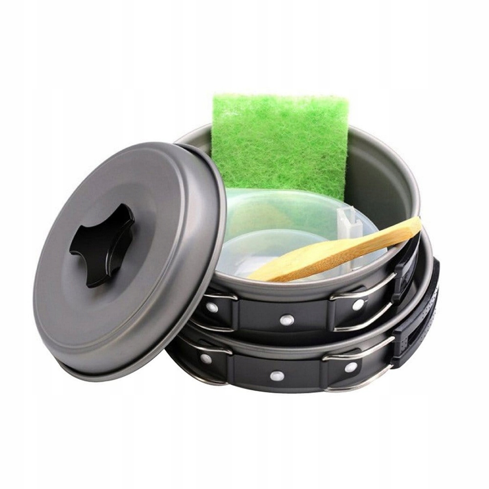 Набір посуду зі складними ручками. Посуд можна скласти в зручний туристичний набір. Корисно для кожного походу.