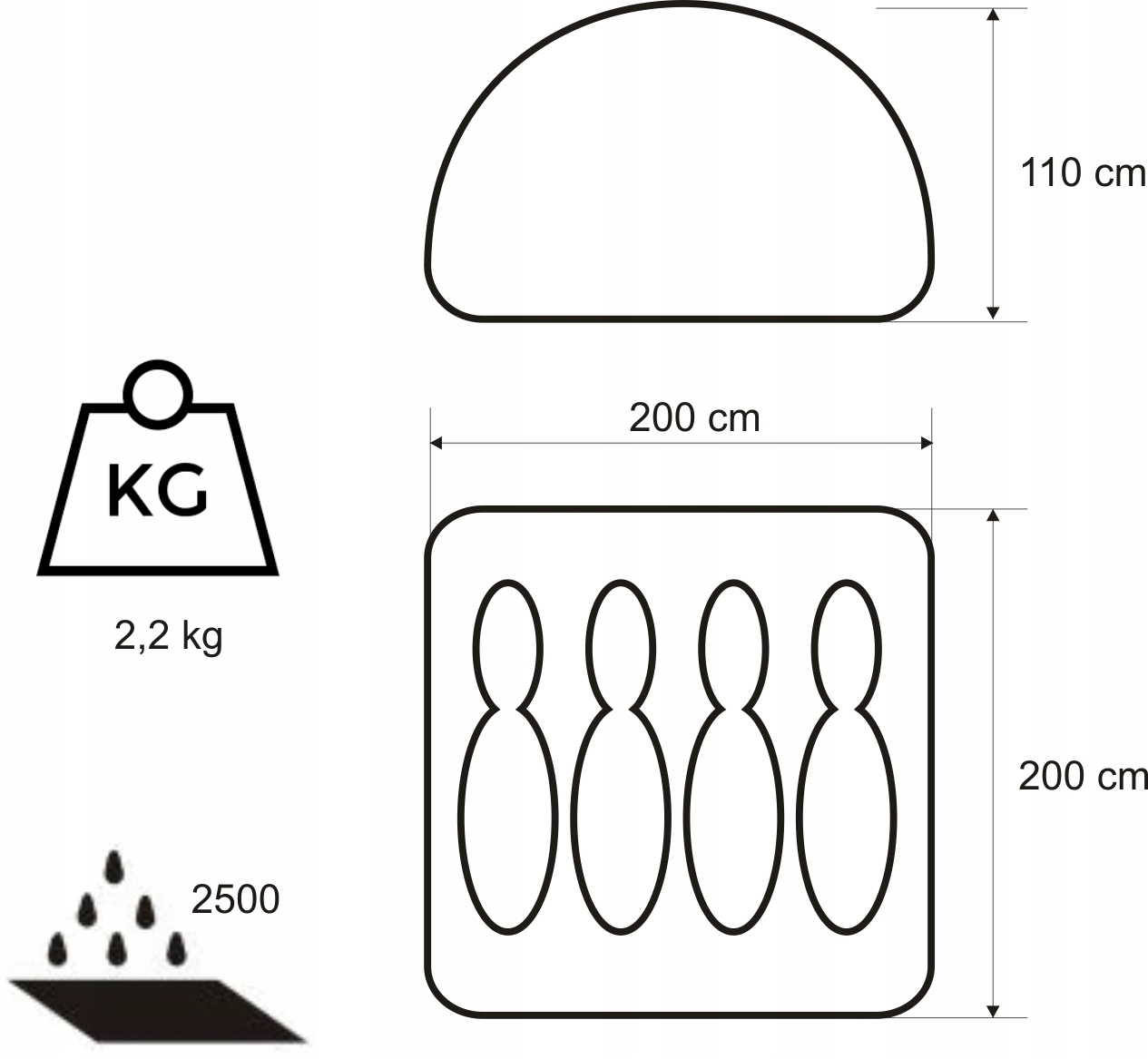 - усі шви проклеєні - розмір після складання: 200 x 200 x 110 см