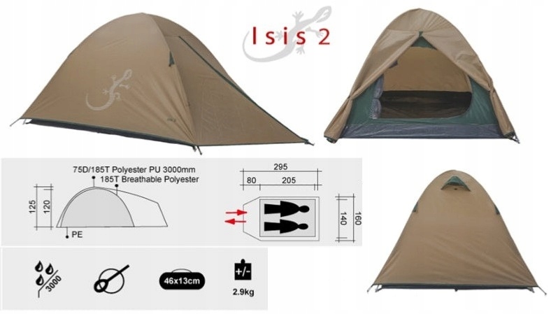 ISIS 2 - це компактний купольний намет, призначений для однієї або двох людей, призначений для кемпінгу, фестивалів та відпочинку на свіжому повітрі. Завдяки вазі 2,9 кг та розмірів після упаковки 46 х 13 см, він легко вписується в рюкзак або велосипедний пані. Проста структура, що підтримує себе, на основі рамок зі склопластику, дозволяє швидко налаштувати намет навіть менш досвідченими користувачами.