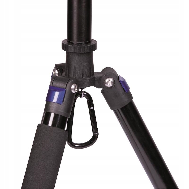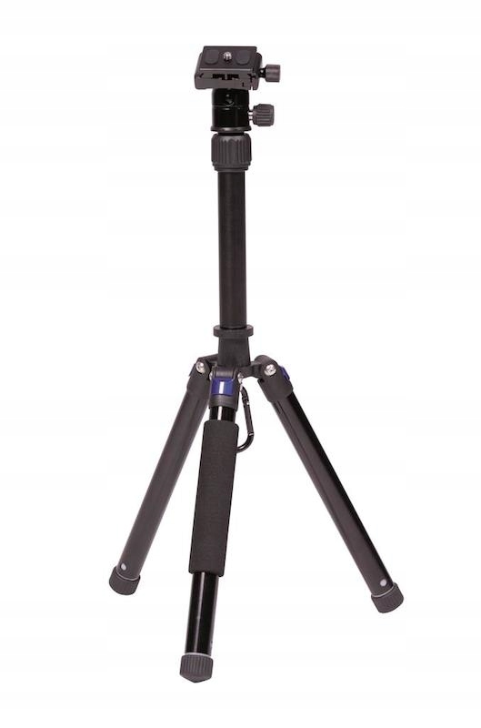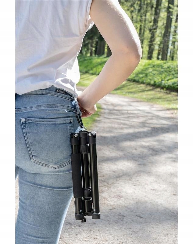 Алюмінієвий туристичний штатив з кульковою головкою, мінімальні розміри після складання - спеціальна система поворотних/складних ніжок з 5 секцій і центральною 2-секційною висувною частиною, практичне кріплення на клацання. Розміри: у складеному вигляді 28 см / висота 27,5-115 см, вага 680 г, макс. навантаження 4 кг, вкл. корпус, чорний.