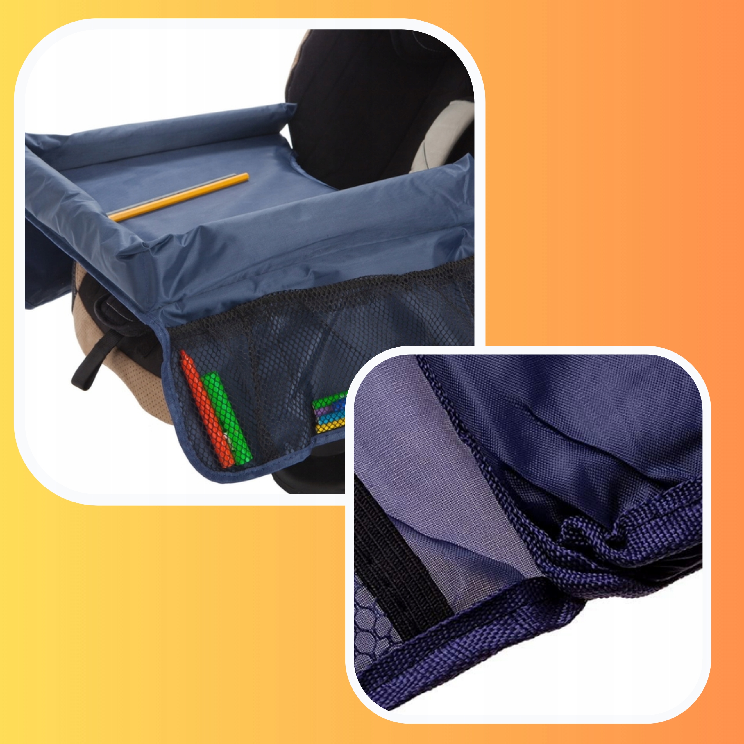 ⭐Дорожній столик для дітей зазвичай виготовляється з міцного та легкого матеріалу. - для очищення матеріалів, таких як пластик або водонепроникна тканина. Зазвичай він кріпиться до спинки переднього сидіння автомобіля за допомогою регульованих ременів або кріплень, що забезпечує стабільність і безпеку під час водіння.