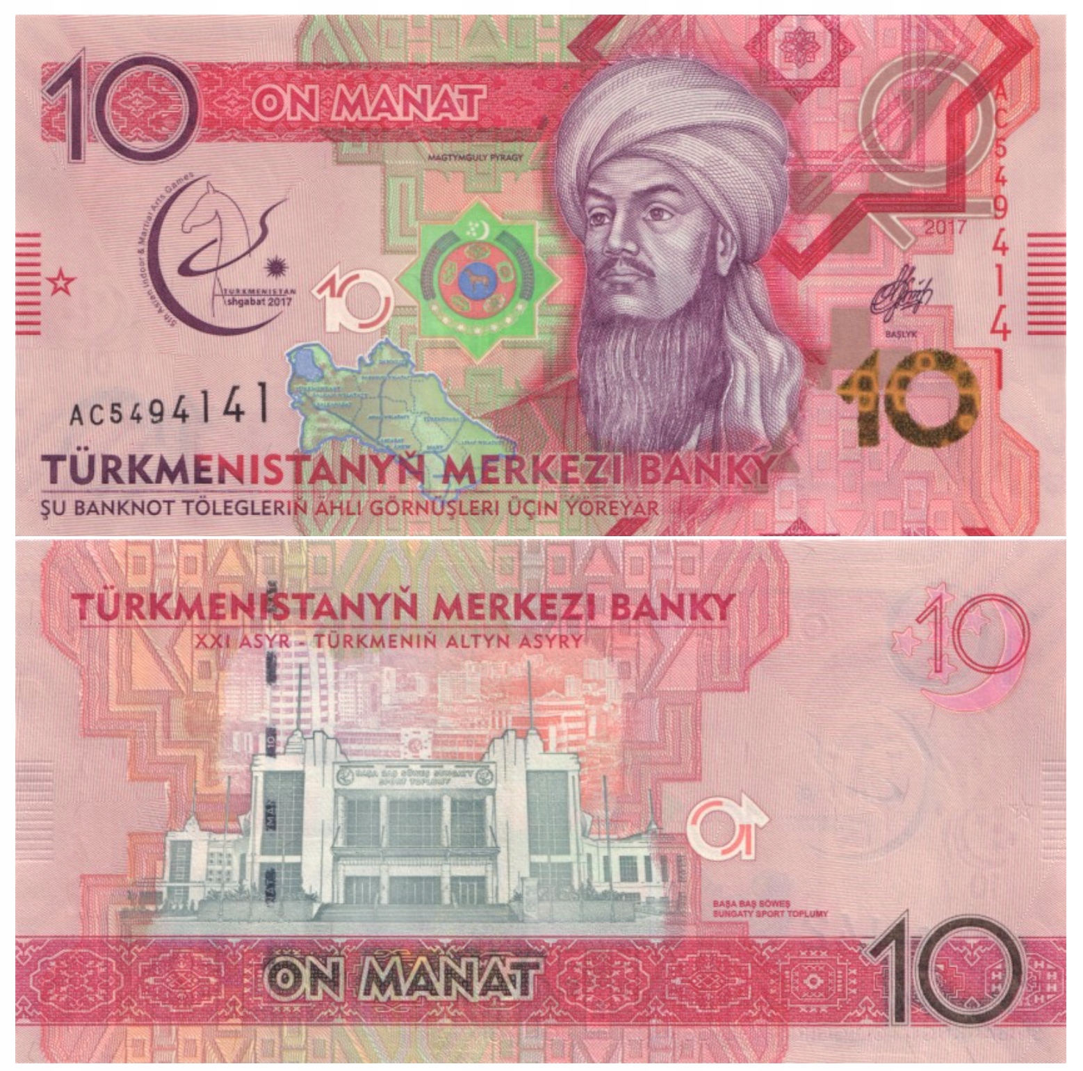 ТУРКМЕНІСТАН 10 МАНАТ 2017 P-38 UNC,