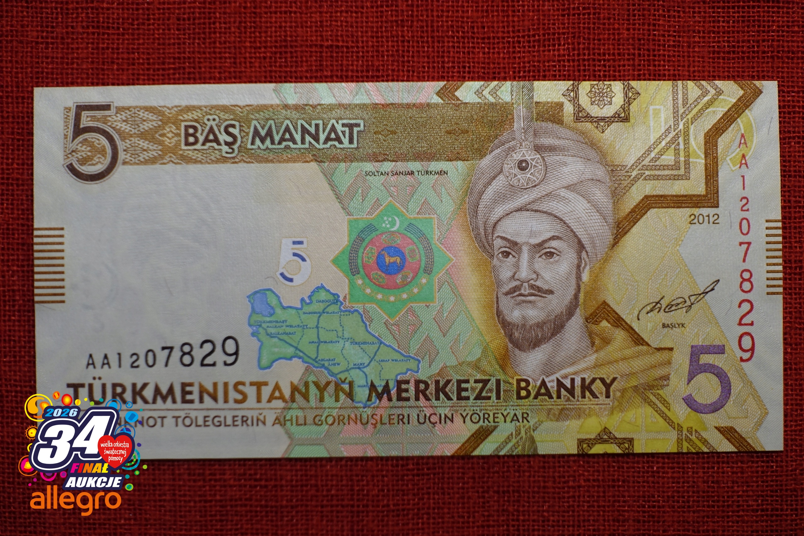 Продам банкноту ТУРКМЕНІСТАН номіналом 5 манатів, рік випуску: 2012, кат. немає P-30
