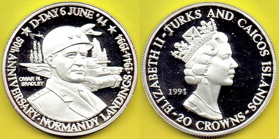 TURKS AND CAICOS 20 CROWN 1994 r. Ag