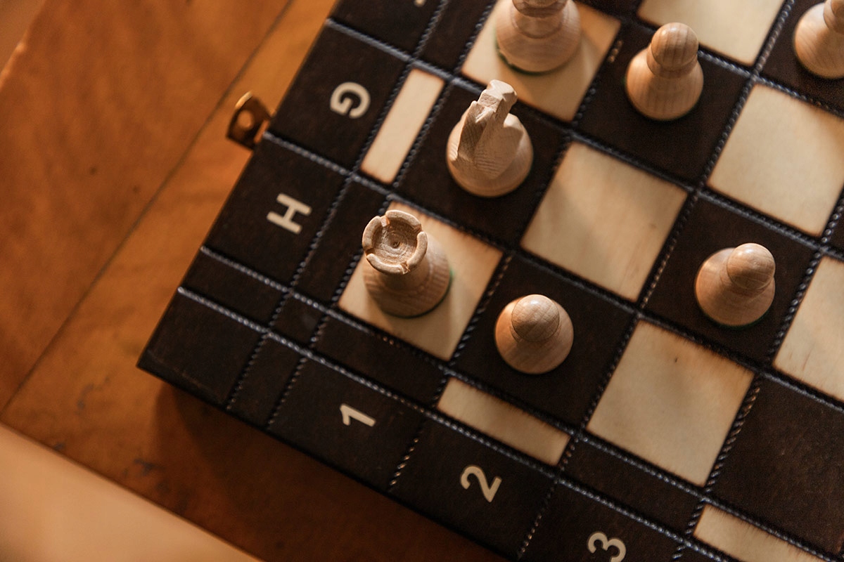 Усередині шахової касети є вставка, покрита флоком, завдяки чому кожна фігура та пішак мають своє місце, захищаючи їх від механічних пошкоджень. Щоб захистити стіл від подряпин, петлі обтягнуті тканиною.