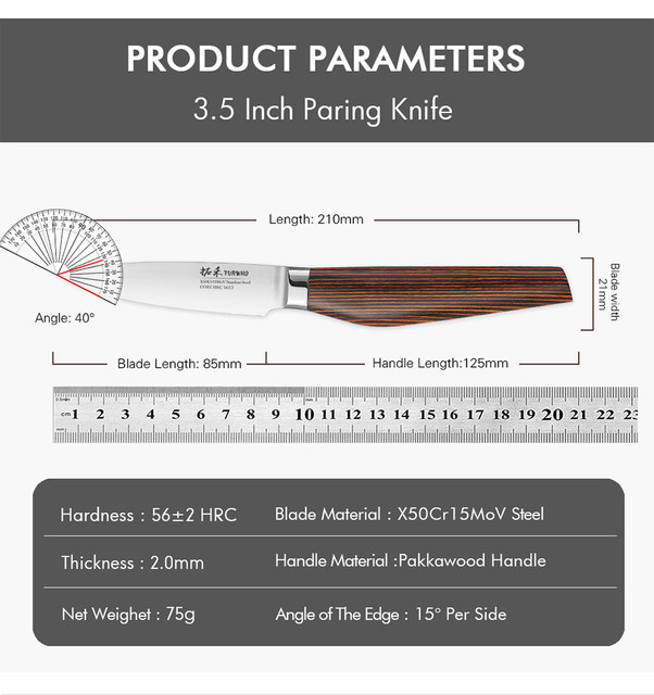 Turwho 3,5 "Парінг -нож високий вуглецевий нержавіючий