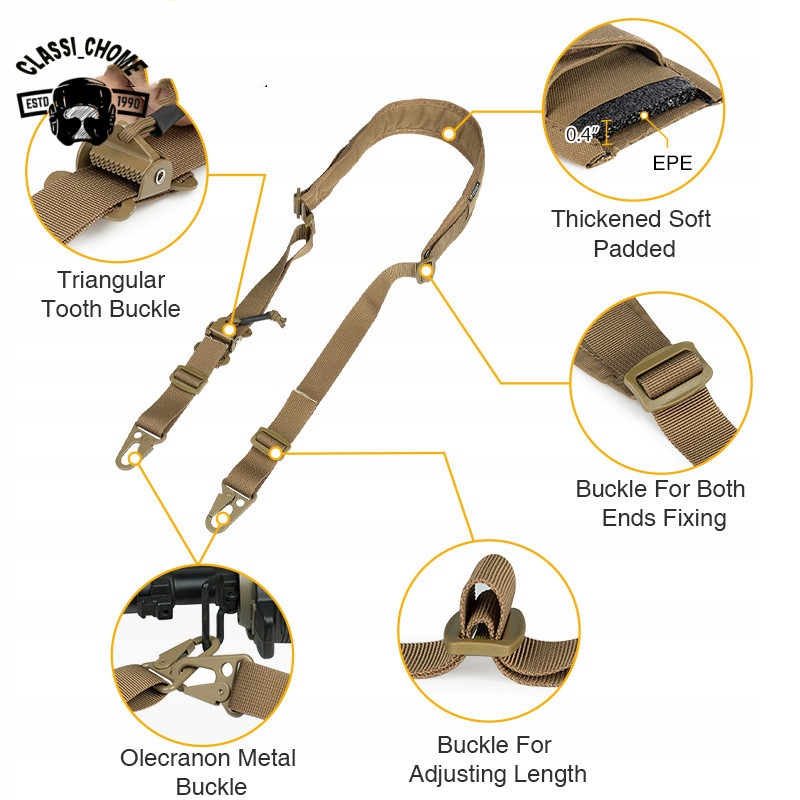 , виготовленим з нейлону 500d з металевим затискачем для швидкого регулювання.
