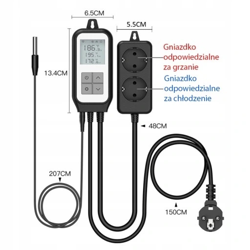 Датчик температури Wi -Fi Tuya з функціонуючою функцією нагрівання або охолодження залежно від встановленої температури. Контроль вручну або налаштування програми.