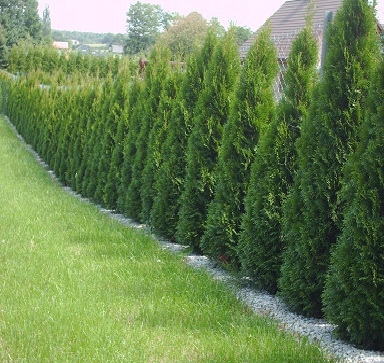 кущ соковитого зеленого кольору, пропорційної форми. Не буріє навіть у сувору зиму. Виростає до 4 м, зберігаючи форму правильного вузького конуса. Гарно виглядає в стильних садах і підходить для неформованих рядів і стрижених живоплотів. Гілочки молодих екземплярів вертикальні, блискучі. Вони постійно (навіть взимку) зберігають свій яскравий зелений колір. У вирощуванні це дерево невибагливе до грунту і клімату. Він дуже стійкий до низьких температур. Для отримання щільної живоплоту ми висаджуємо туї через кожні 60 см.