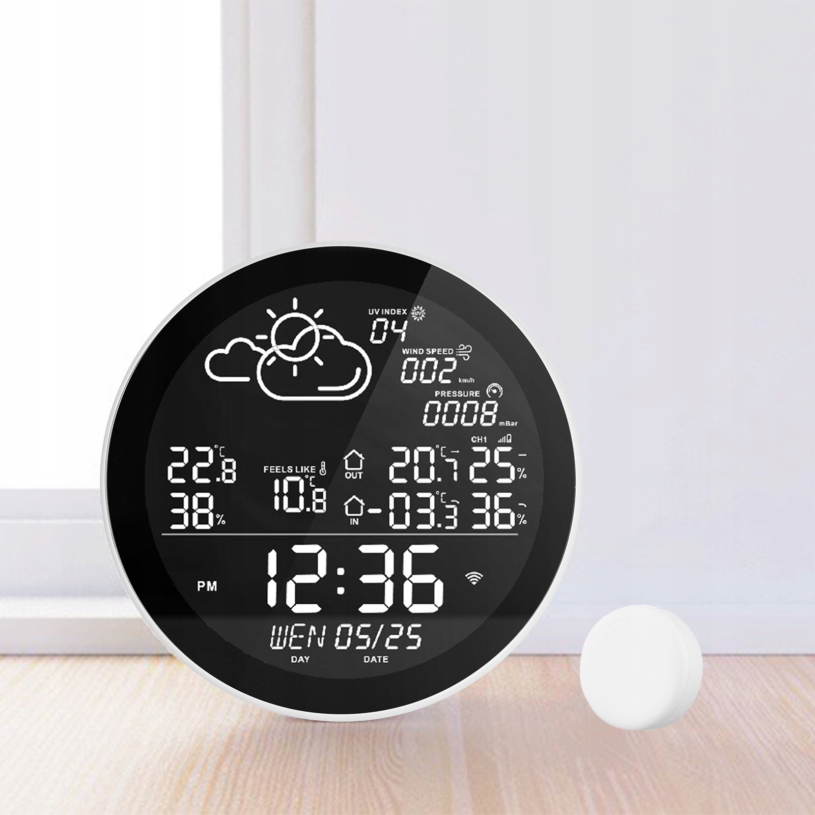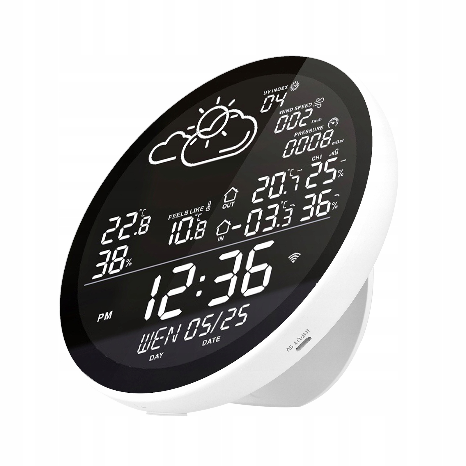 - Великий РК -екран для відображення інформації про погоду, час, дати, температуру та вологість зовні та вологість, а також зміст дисплея може бути зробленим згідно з вашими уподобаннями. День.