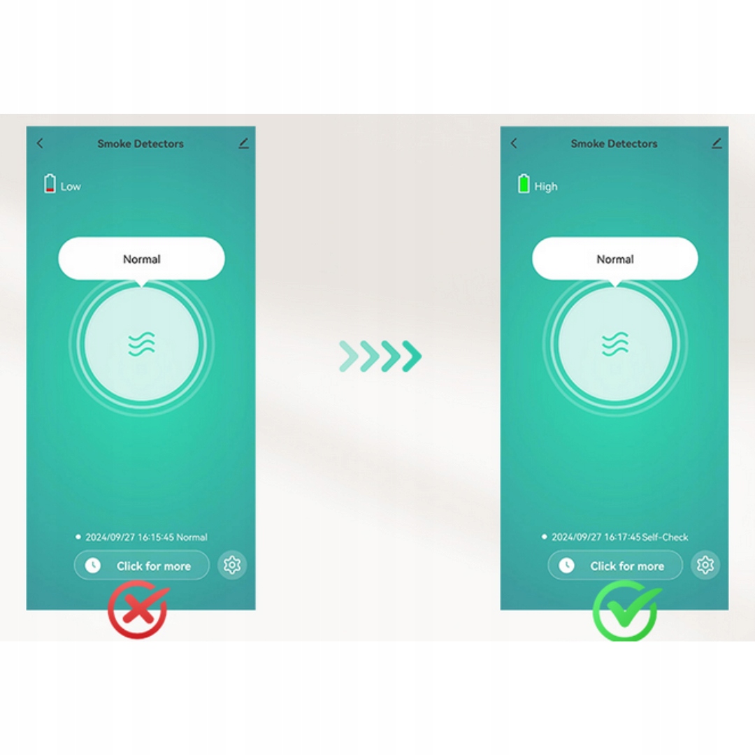 Якщо після першого підключення до програми «Smart Life»/«Tuya» стан батареї вашого датчика диму Wi-Fi відображається як «Низький» (як показано на малюнку 1), не потрібно панікувати. Ви можете видалити пристрій із програми та повторно під’єднати його, і стан акумулятора правильно відображатиметься як «Високий» (як на малюнку 2), і все повернеться до нормального стану.