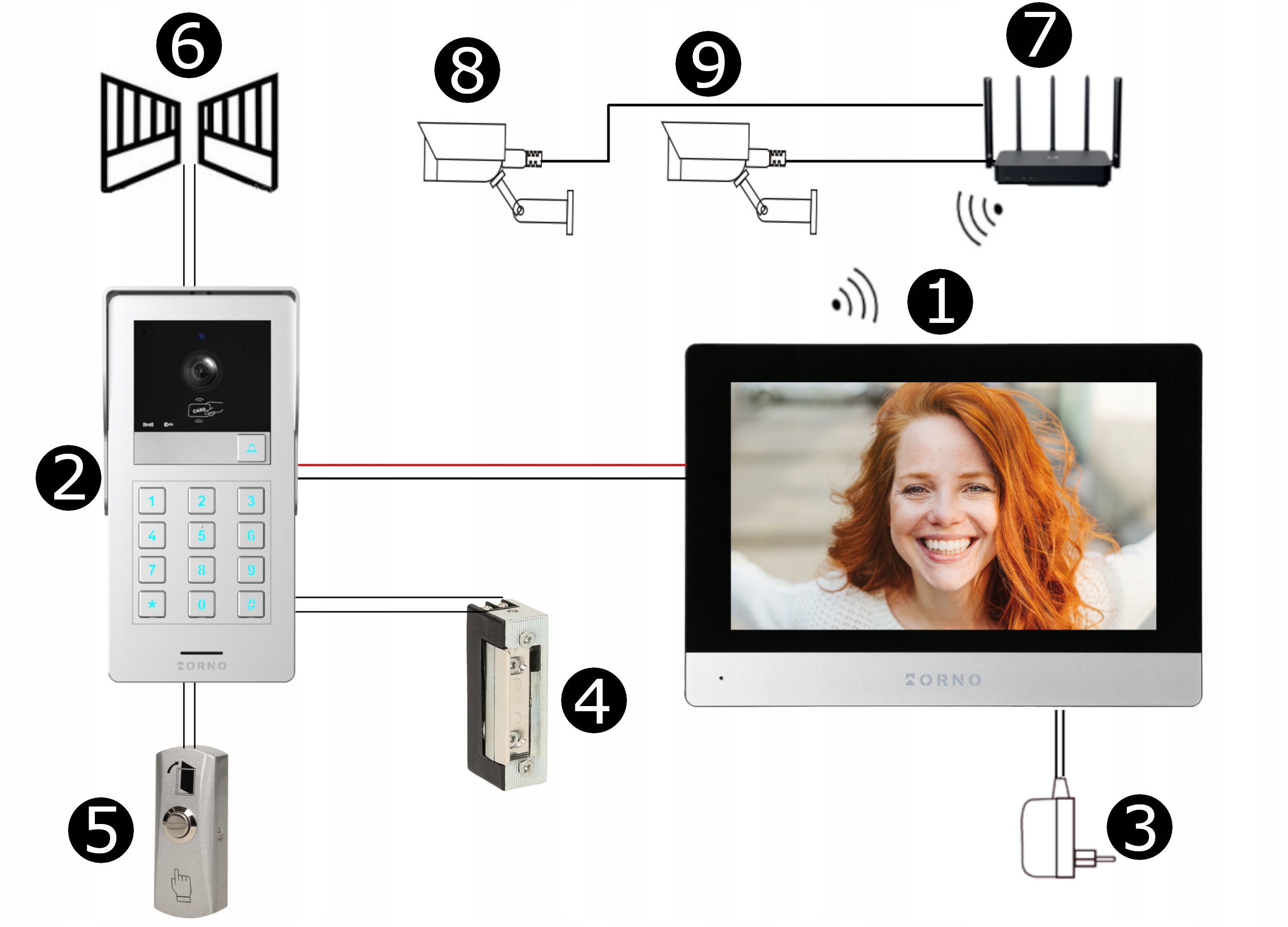 Набір можна розширити додатковими аксесуарами, доступними в нашій пропозиції. Можливість розширення набору до 2 зовнішніх панелей, 6 моніторів і 2 IP камер.