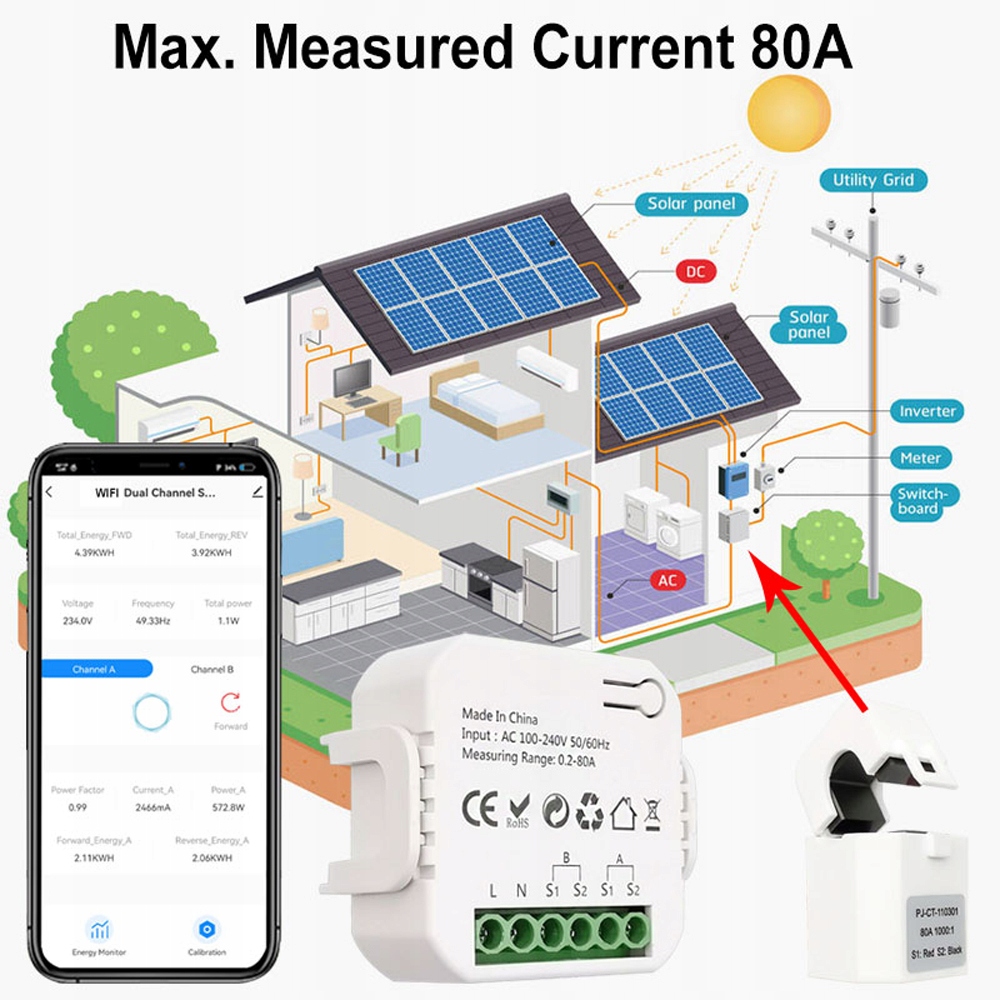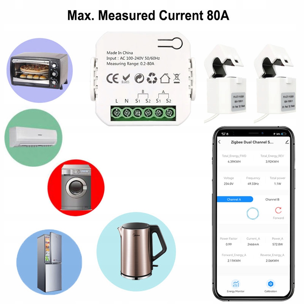 - Цей інтелектуальний лічильник енергії Tuya контролюється додатком Tuya, додаток відображає потужність у режимі реального часу, струму, напруги, коефіцієнта потужності, частоти та статистики електроенергії для кожного каналу вперед і назад. Підтримка вимірювання споживання енергії. Пристрій здатний калібрувати, регулюючи відсоток.