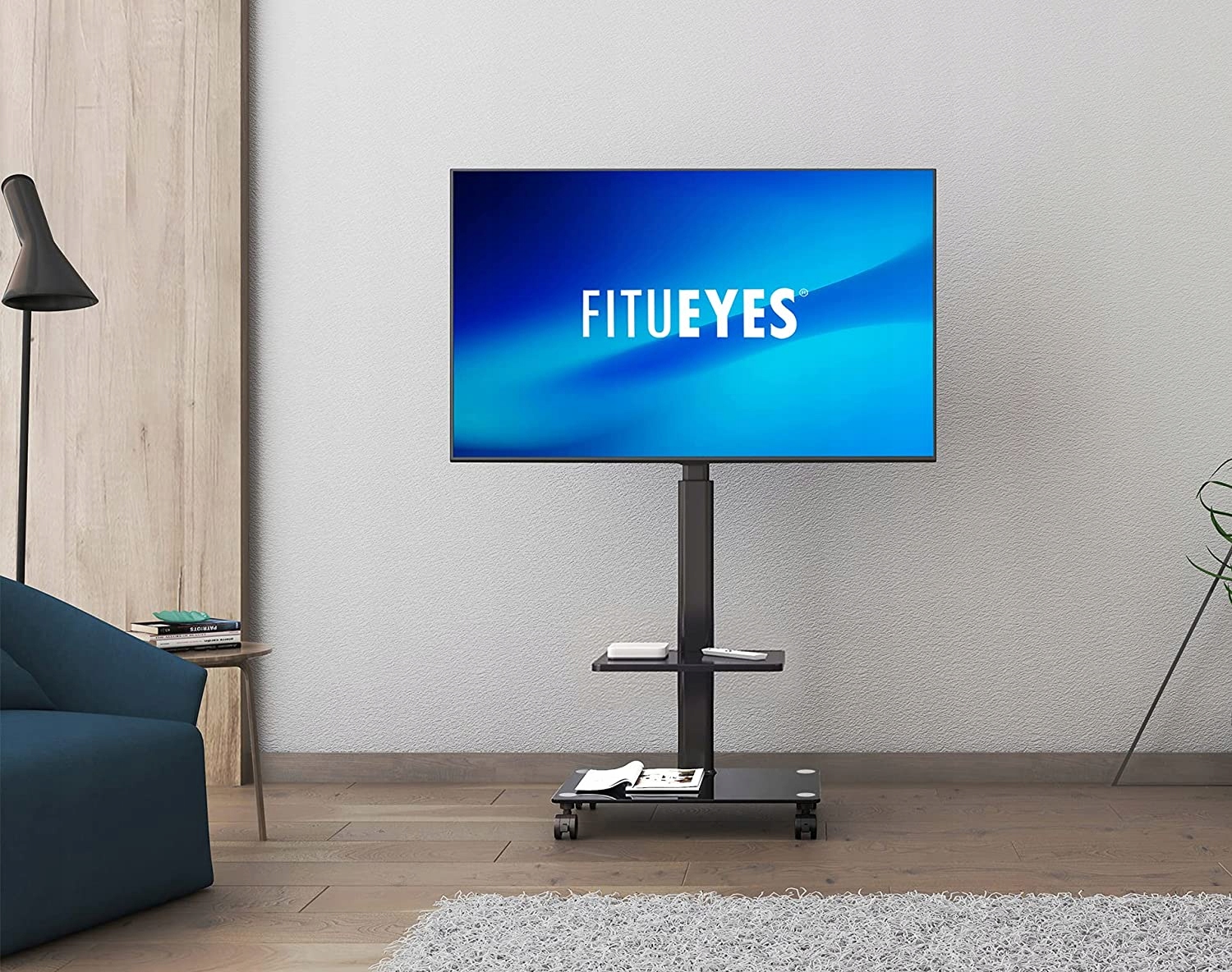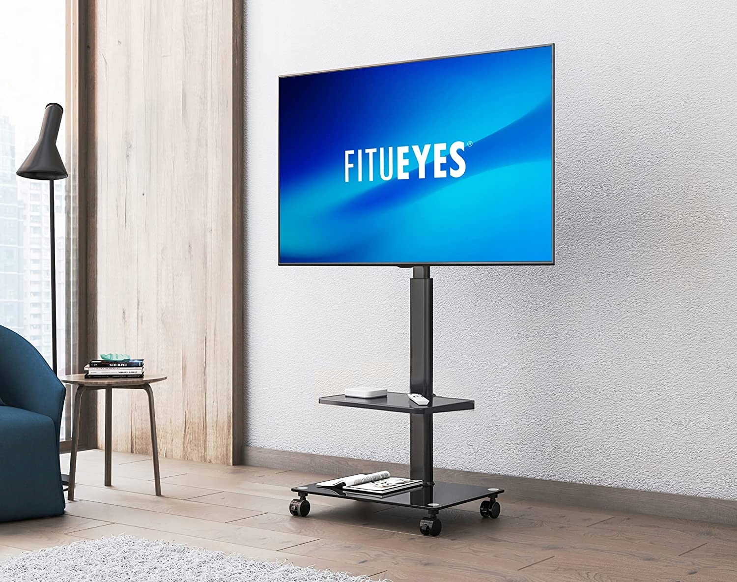 Рухові та практичні: Завдяки 4 замкнених колесах високої якості, телевізійна візка не тільки злегка котиться, але й безпечна. Основа товщиною 8 мм Чорне загартоване скло забезпечує стабільне і міцне зчеплення.
