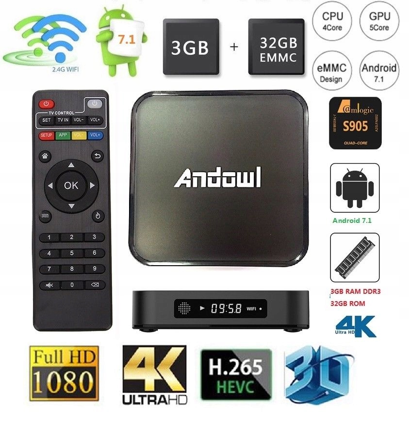 TV BOX ANDOWL 4K SMART BOX Wi-Fi ODTWARZACZ 3GB RAM ANDROID 7.1