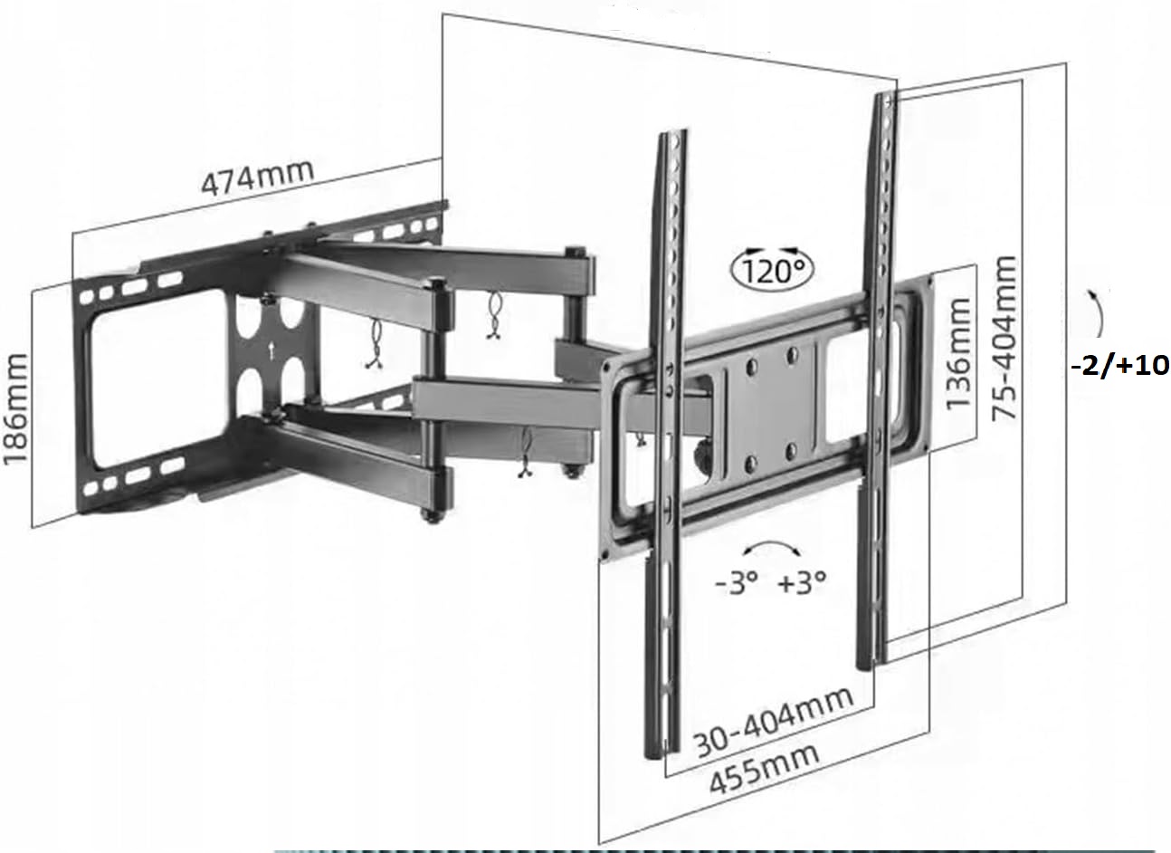 Це кріплення має функцію повного регулювання руху, що означає, що ви можете налаштувати положення телевізора відповідно до своїх уподобань. Ви можетеповертати телевізор з боку в бік, нахиляти його вгору та вниз, а також витягувати чи тягнути до себе, щоб отримати оптимальний кут перегляду з різних точок кімнати. Завдяки цьому ви забезпечитезручність і комфорт під час перегляду ТБ.