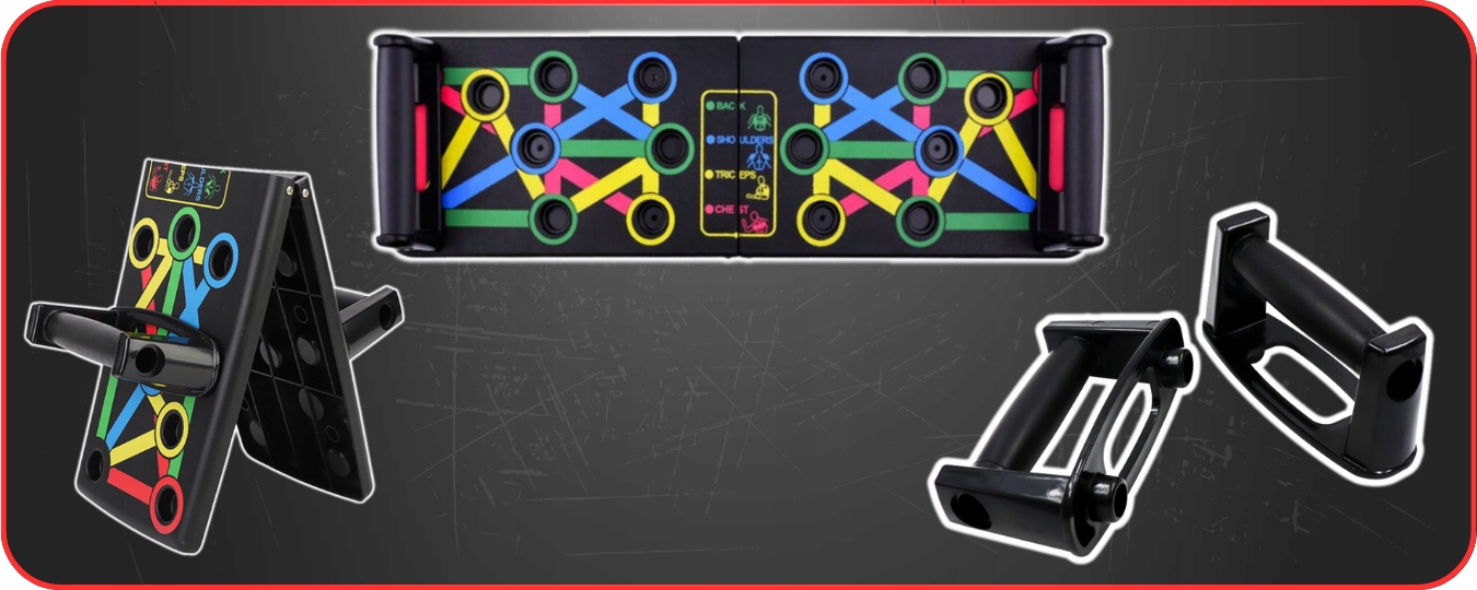 Багатофункціональна дошка насосів -це чудова альтернатива традиційним поштовхом. Дошка з барвистими лініями містить підтримує для полегшення згинання плечей у передній опорі. Рядки та Інструкція пропонуючи, як відкласти ручку, щоб увімкнути роботу над бажаною частиною м'язів.