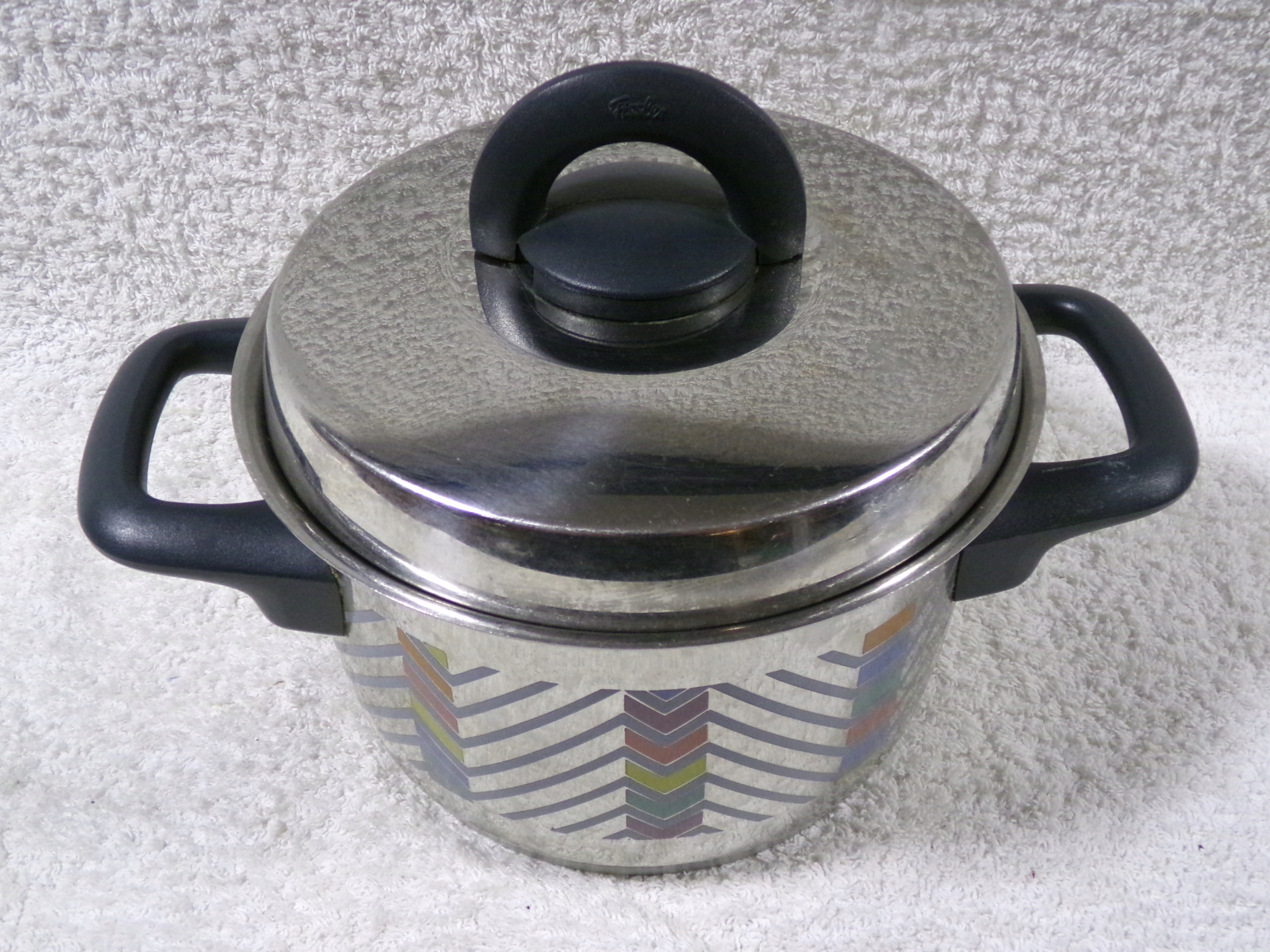 горщик з нержавіючої сталі знаменитої компанії Fissler з діаметром 18 см, висотою 19,5 см, ємністю 2 літра, вагою 0,91 кг. Умова дуже хороша, без пошкоджень, звичайні сліди використання користувачів. Суцільна рука. Allegro One, DHL, DPD, UPS -5 аукціони.