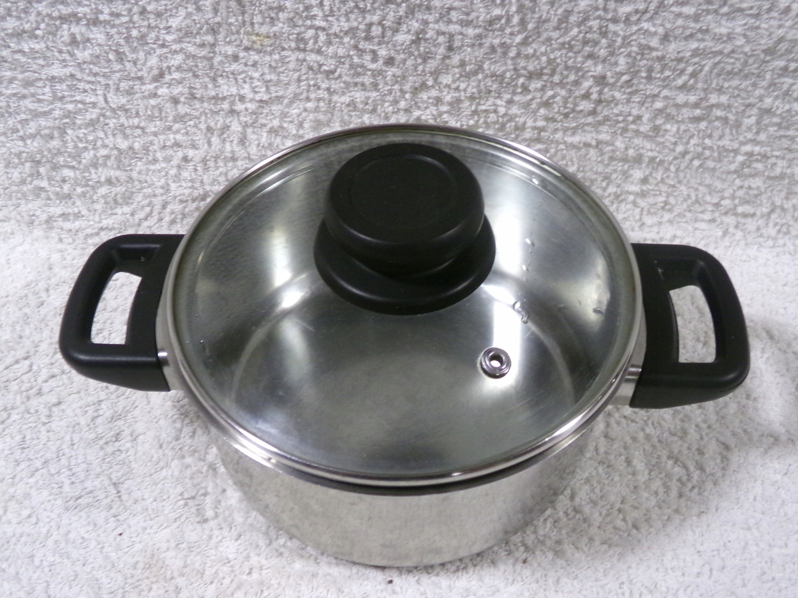горщик з нержавіючої сталі діаметром 17 см, висота 13 см, ємність 1,5-2 літра, вагою 0,75 кг. Дуже хороший стан, без пошкоджень, ніжні сліди використання.
