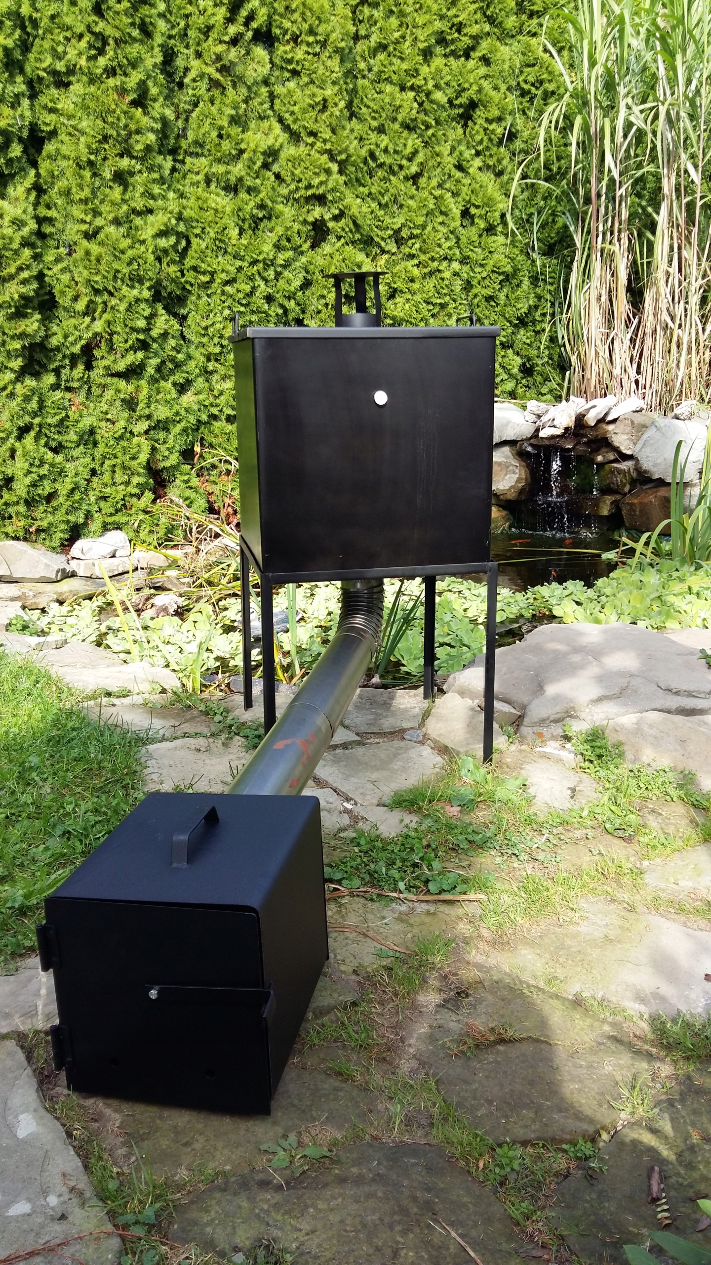 Тема продажу - це суцільний металевий садовий опік, виготовлений з товстого чорного листа, коптильня ззовні покрита лакам, стійким до температури та погодних умов. Смокі були розроблені таким чином, що після куріння ми можемо скласти його дуже легко і швидко, тому зберігання цього не викликає проблеми. Смокі оснащені термометром, який полегшує процес куріння, контролюючи температуру.