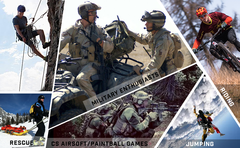 Особливості: 1. Реалістична система ременя та утримання, 2. Суцільна точка прикріплення нічної оптики або камери з еластичними, що запобігає коливанню, 3. Кріплення точок аксесуарів з боку шолома, 4. Знімні вставки для облизування