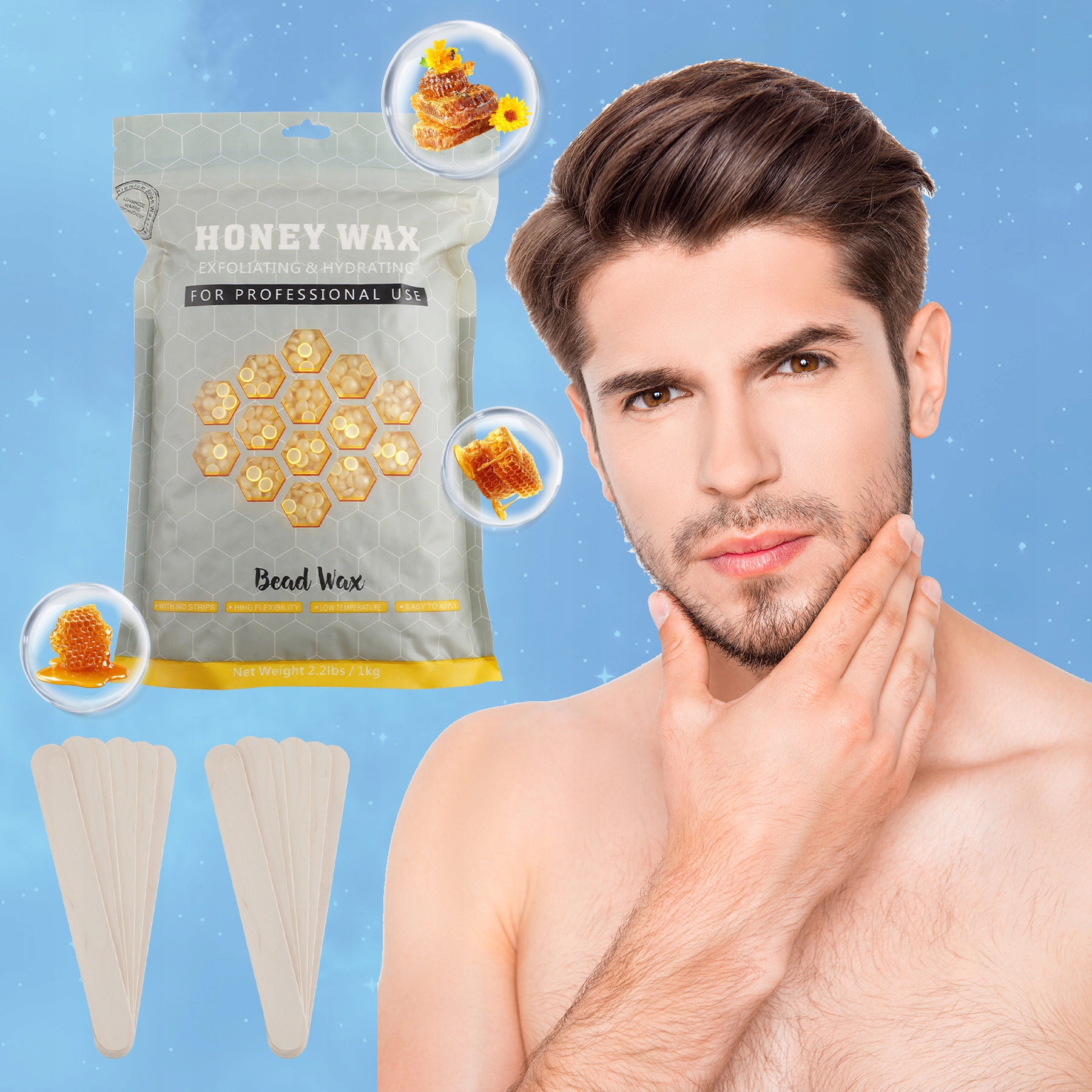 НІЖНИЙ ДЛЯ ЧУТЛИВИХ ДІЛЯН ШКІРИ: воскові кульки, збагачені діоксидом титану, забезпечують ніжне нанесення на чутливі ділянки, такі як обличчя, пахви та зона бікіні. Вони мінімізують подразнення шкіри та біль, забезпечуючи приємні враження під час епіляції.