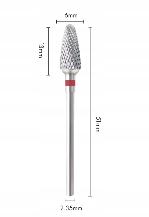 Твердосплавний різець із спеченого твердого сплаву для гібридів, гель, акрил-гель, акрил - тонкий, округлий конус, червоний