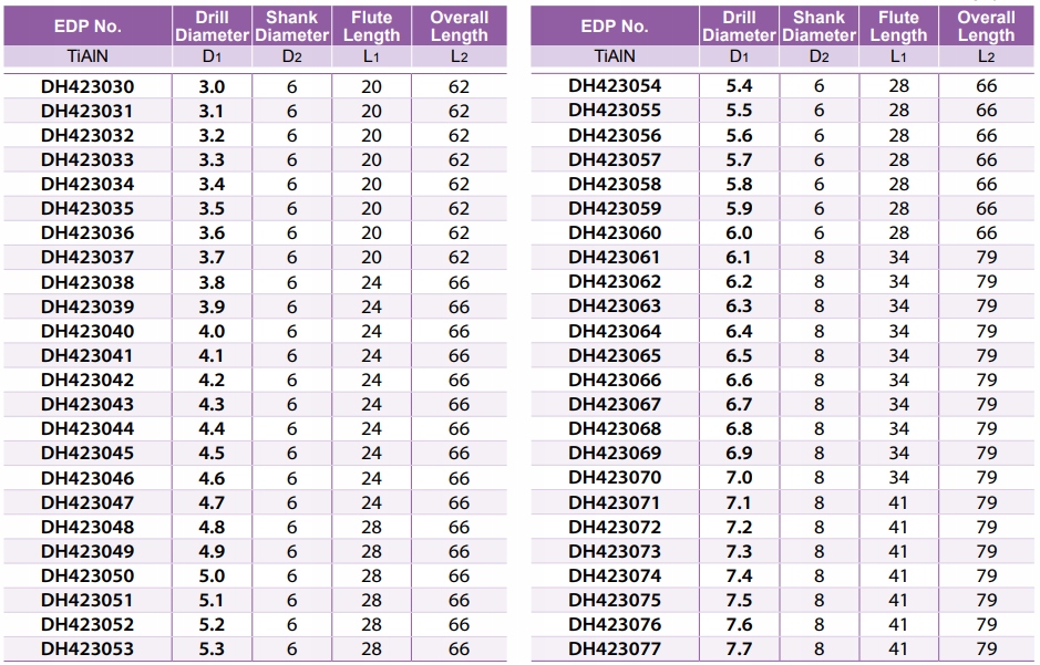 Твердосплавне свердло VHM fi 5.6 3XD TiAlN покриття YG-1 DH423056 EFFICIENT