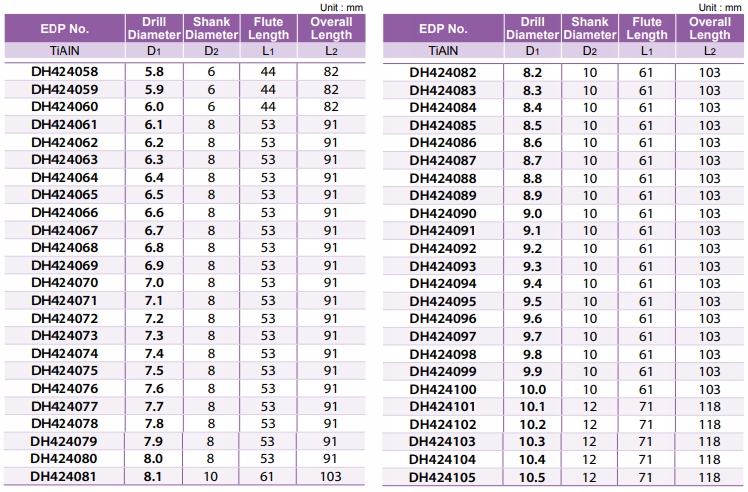 - Свердління: сталь, лита сталь, чавун, ковкий чавун, важкі кольорові метали, кольорові легкі метали, абразивні пластмаси дриль, не вимагає попереднього свердління. Забезпечує надійне позиціонування під час обробки. Ідеально підходить для свердління основної сталі та литої сталі завдяки спеціальному малюнку, який забезпечує чудове видалення стружки.