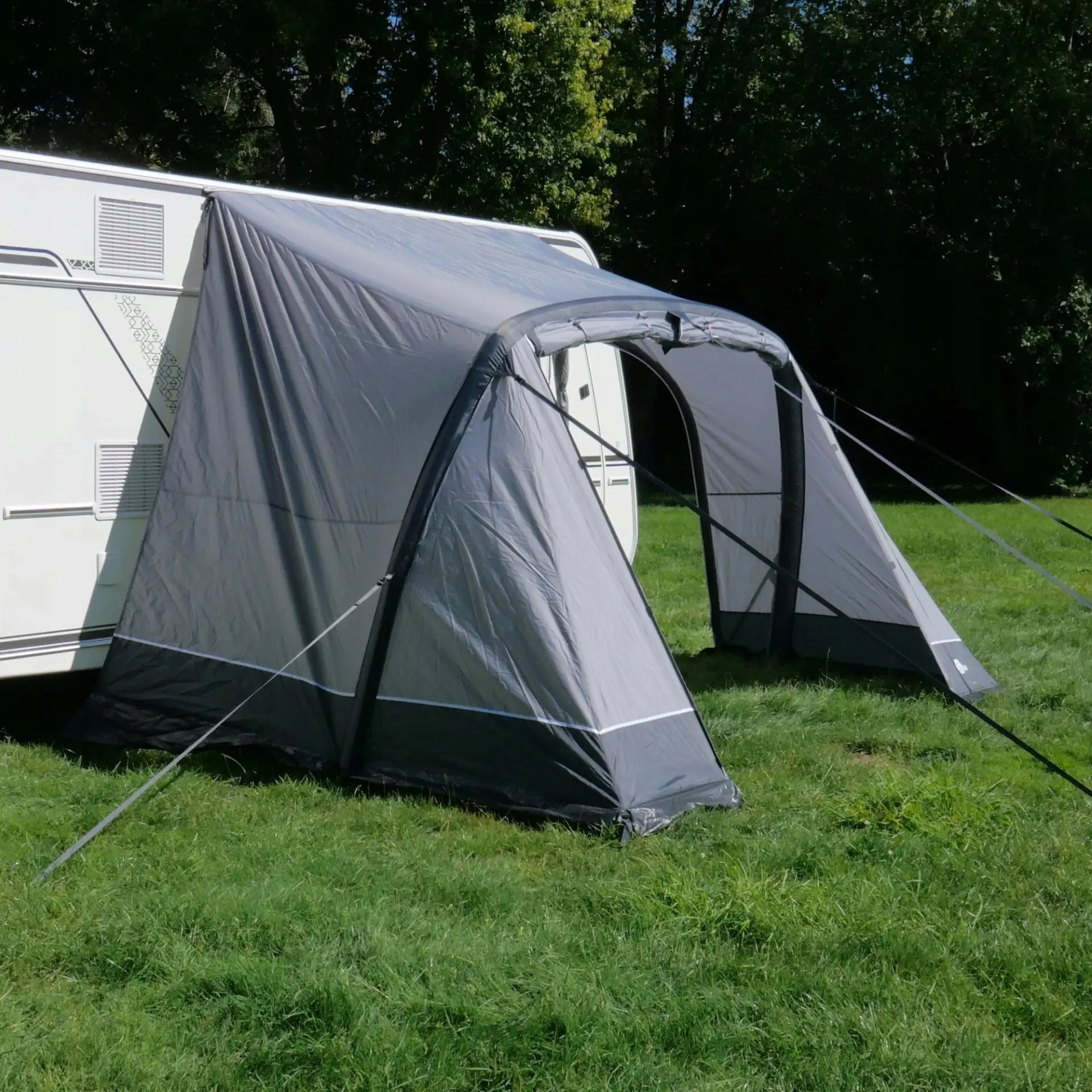 Професійний пневматичний тент з розмірами 350 x 250 см - ідеально підходить для караванів та відпочиваючих! Швидка збірка, захист від сонця та дощу , компактне після складання - все, що потрібно для успішної поїздки.