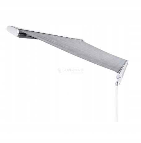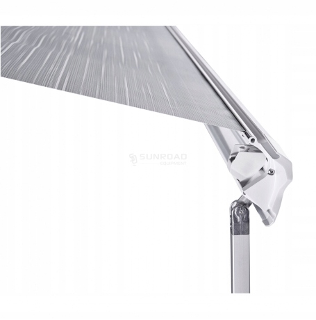 Маркет для будинків, караванів та фургонів. Довжина 3,75 м з охопленим 2,50 м, встановленим на даху. 4 Водонепроникне полотно, оптимальна довговічність. Ноги підтримки розподіляються вертикально. Система коригування касети означає, що тент ідеально закривається, навіть після багатьох років використання.