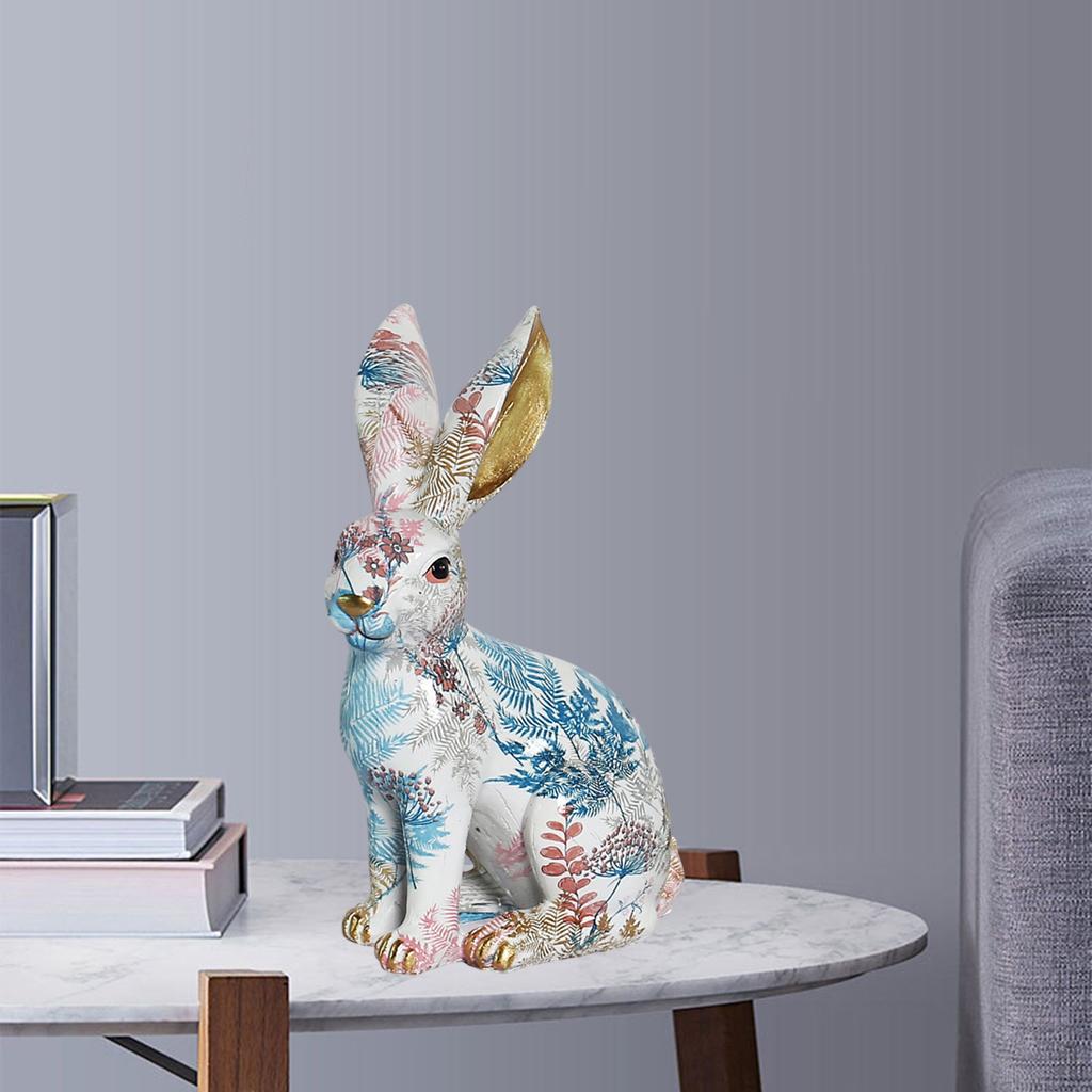 Статуя кролика, відмінна майстерність, з різнокольоровими відбитками листів, чудовим сучасним декором кімнати.